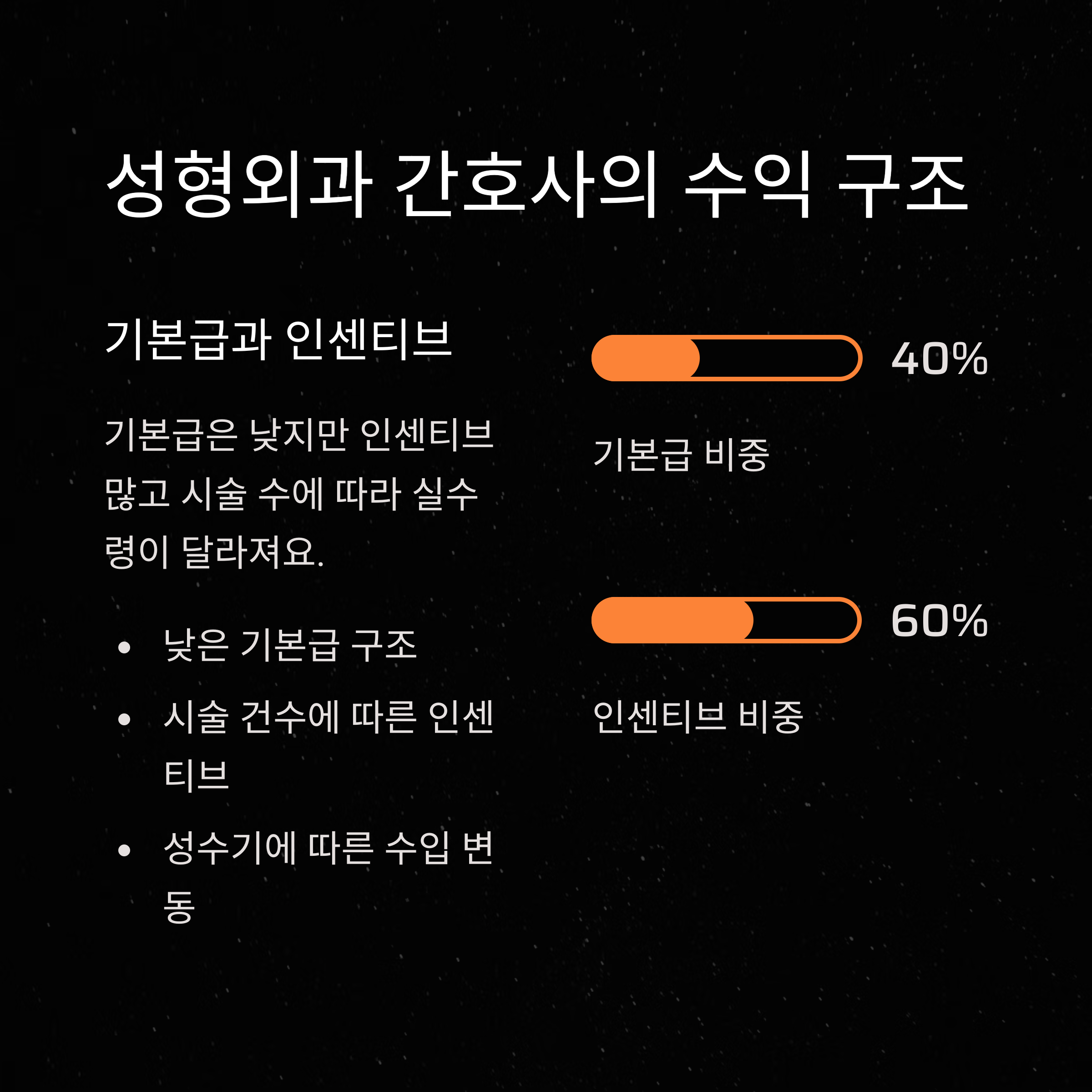 특히 VIP 시술이 많은 병원일수록 인센티브가 탄력적으로 적용되기 때문에, 성형외과는 단순 급여보다는 ‘일당 보너스’ 개념이 강했습니다. 병원 공시 기준으로 보면 낮아보이지만 실수령은 훨씬 높았던 이유죠.