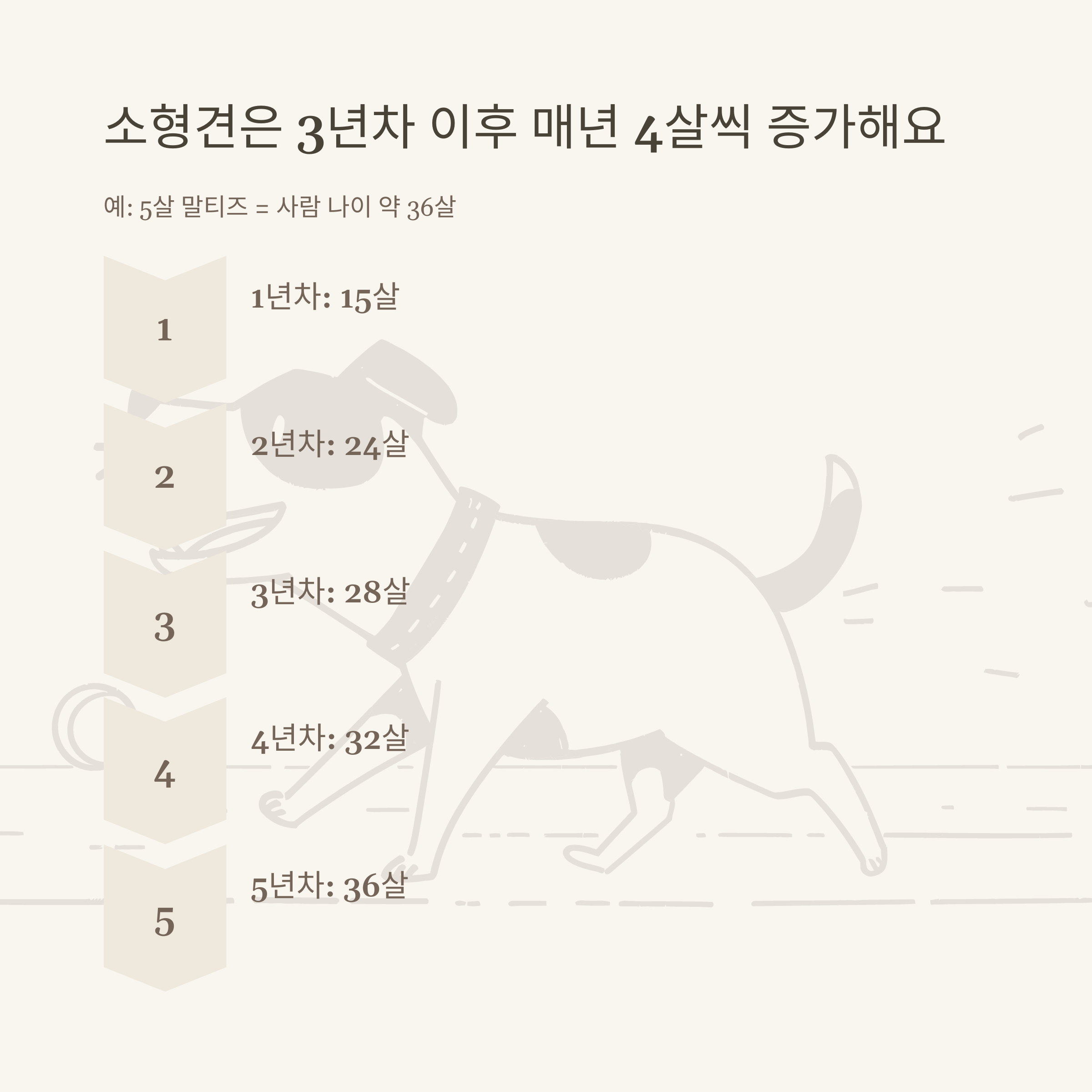 - 중형견: 1년차 15살, 2년차 24살, 이후 +5살씩