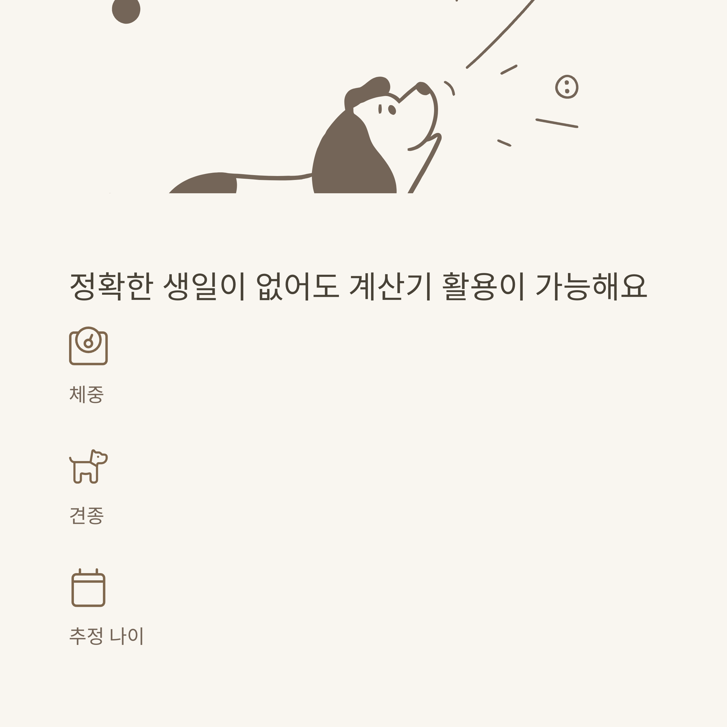 공식 계산기 | 견종·체중·성장단계별 입력, 사람 나이 환산 결과 자동 제공 |