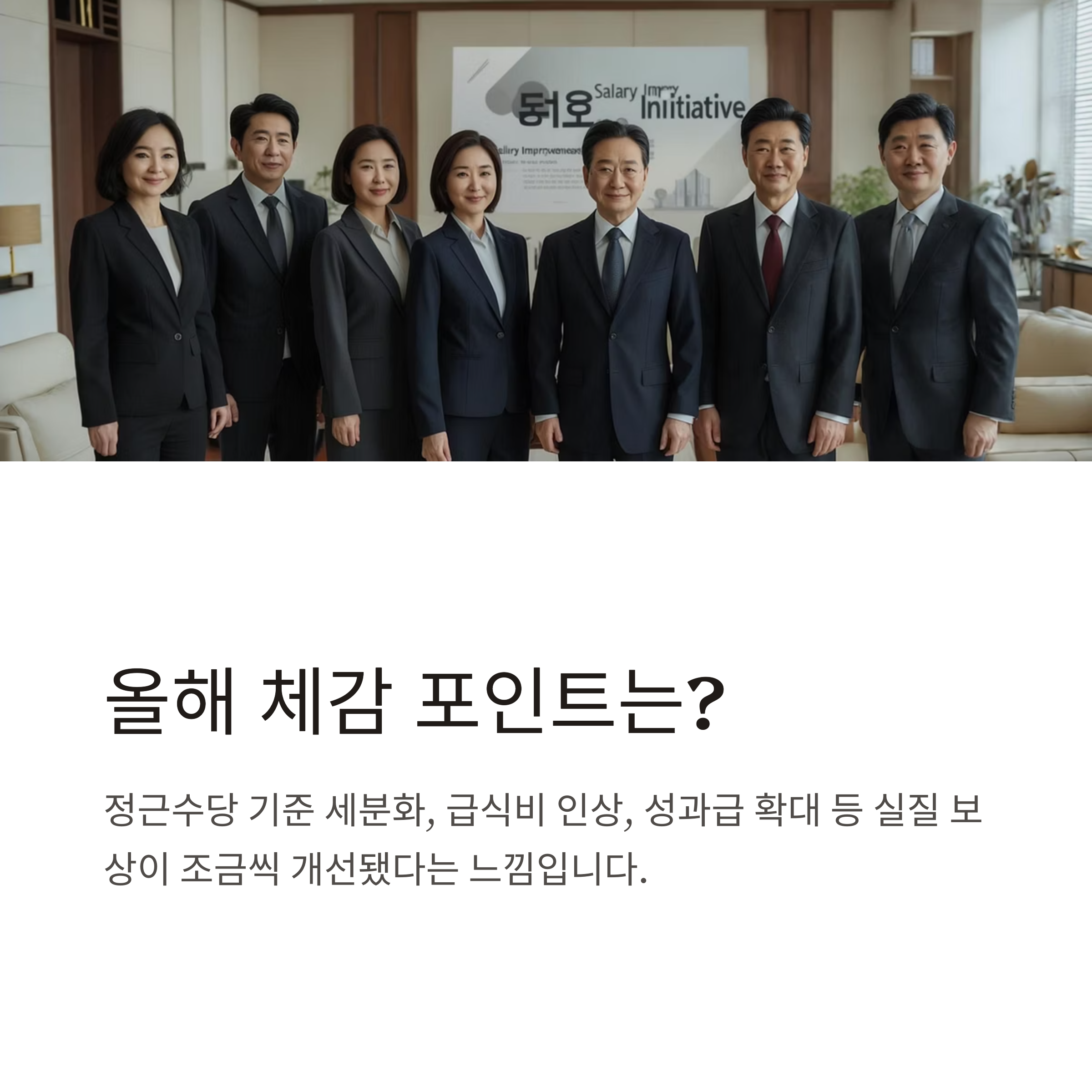 마지막으로, 2025년 공무원보수 등의 업무지침이 실제로 체감되는 변화는 무엇일까요? 저는 급여 명세서보다도, 동료들의 말 한마디에서 그 체감을 느낄 수 있었습니다.