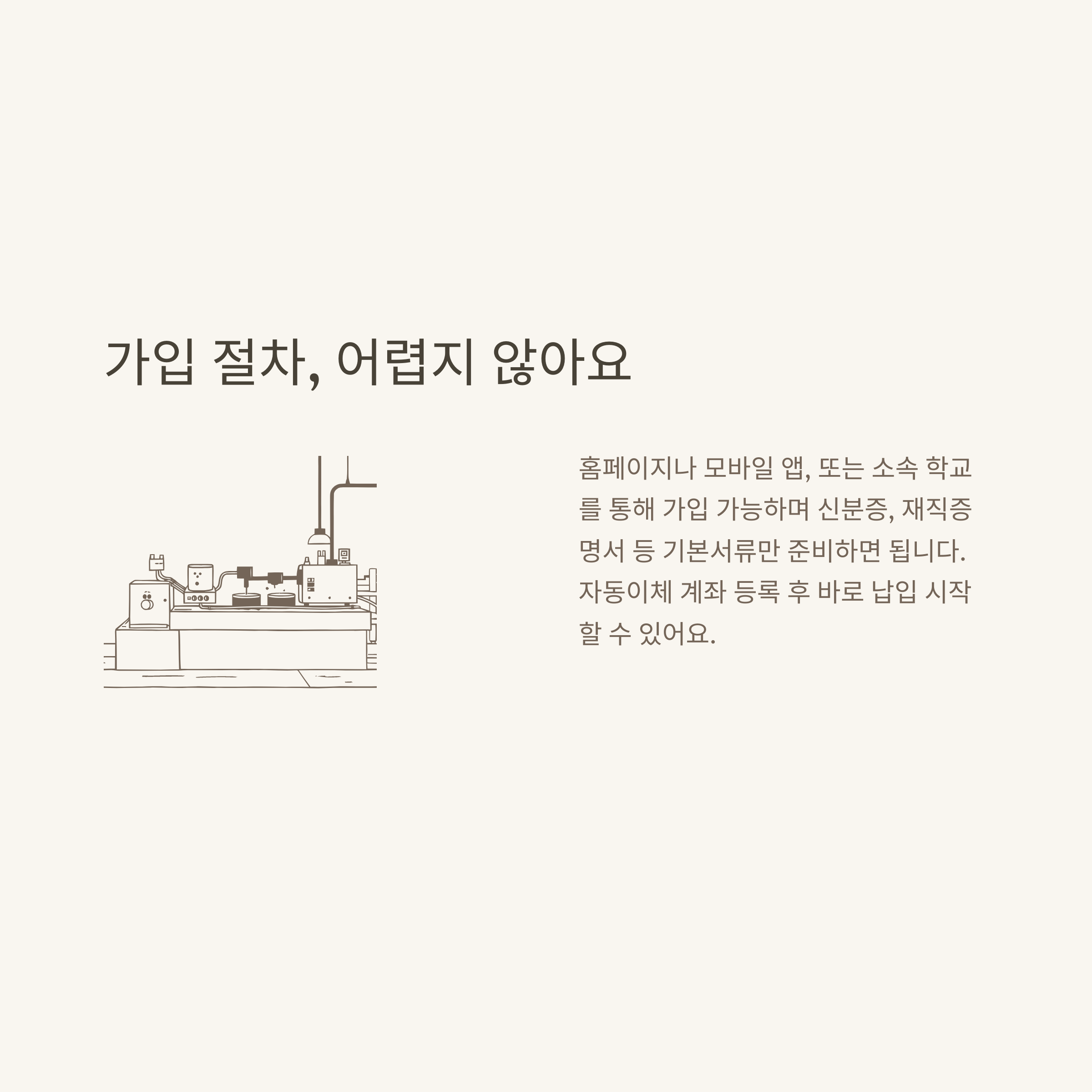 주요 특징은 가입 대상이 교직원(교사, 행정직 등)으로 제한되고, 금리가 시중은행 대비 높으며, 자동이체로 꾸준히 납입할 수 있다는 점입니다. 특히 적립식 방식으로 매달 일정 금액을 쌓아가며, 만기 시 목돈 마련에 정말 큰 도움이 됐습니다.
