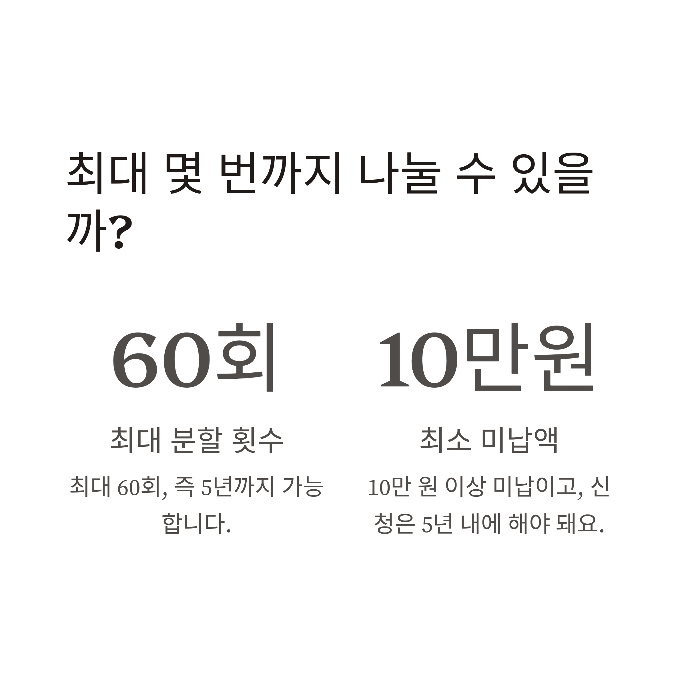 | 최대 분할 횟수 | 60회 (5년 이내) |