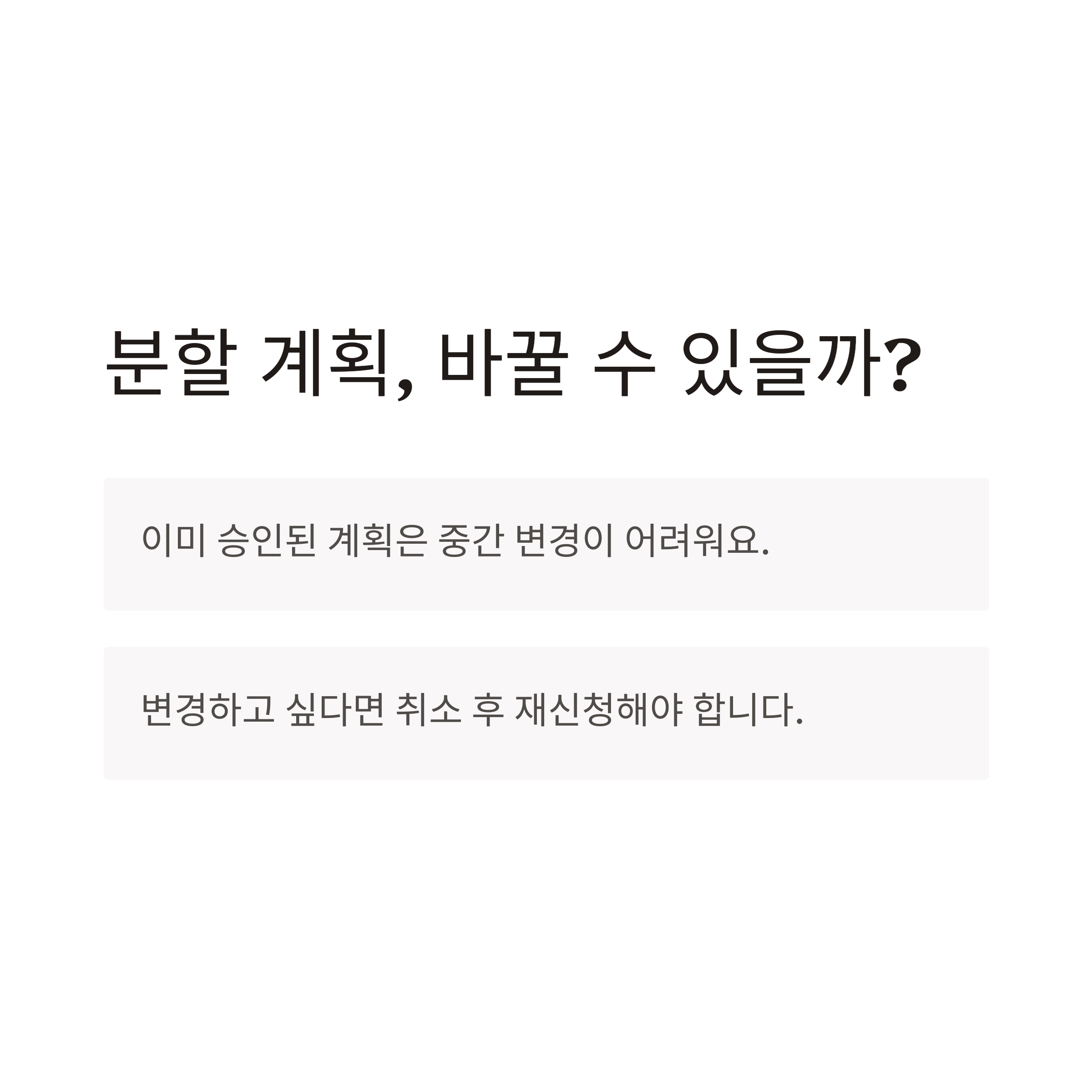 A. 아니요. 한 번 승인된 계획은 변경이 어렵고, 취소 후 재신청해야 합니다.