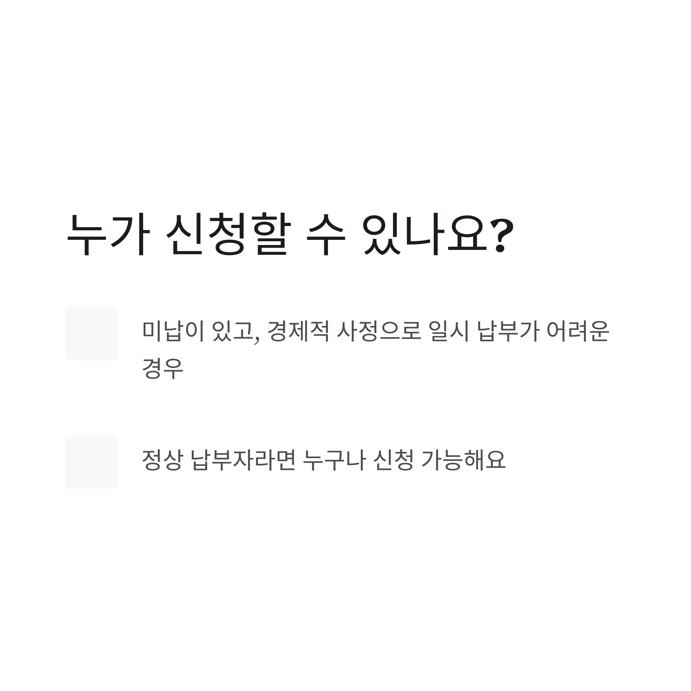 | 소득 부족 | 경제적으로 한 번에 납부 어려운 경우 |