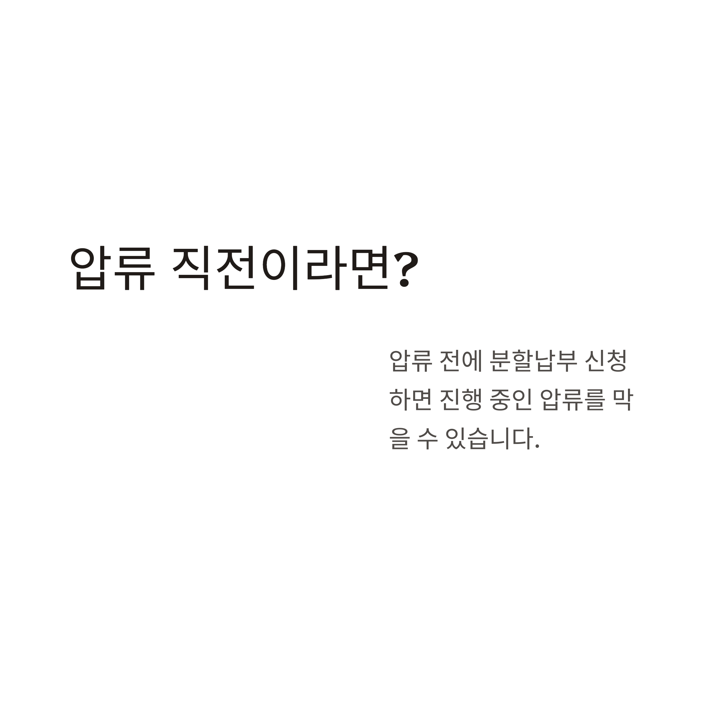 - 압류 진행 중이라면 분할납부는 불가 (압류 해제 후 가능)