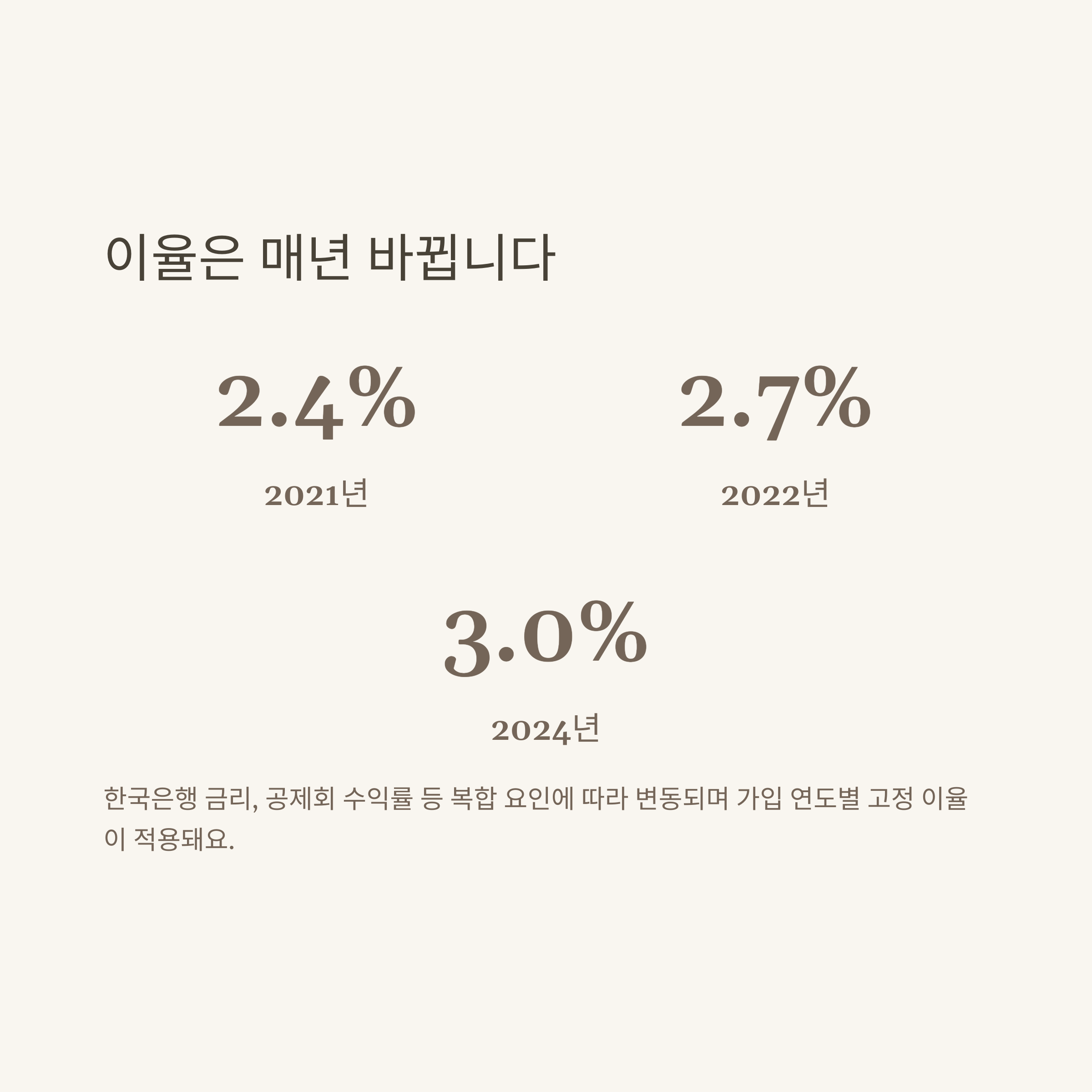 - 각 납입월별로 적용 이율이 다름(가입 연도별로 고정)