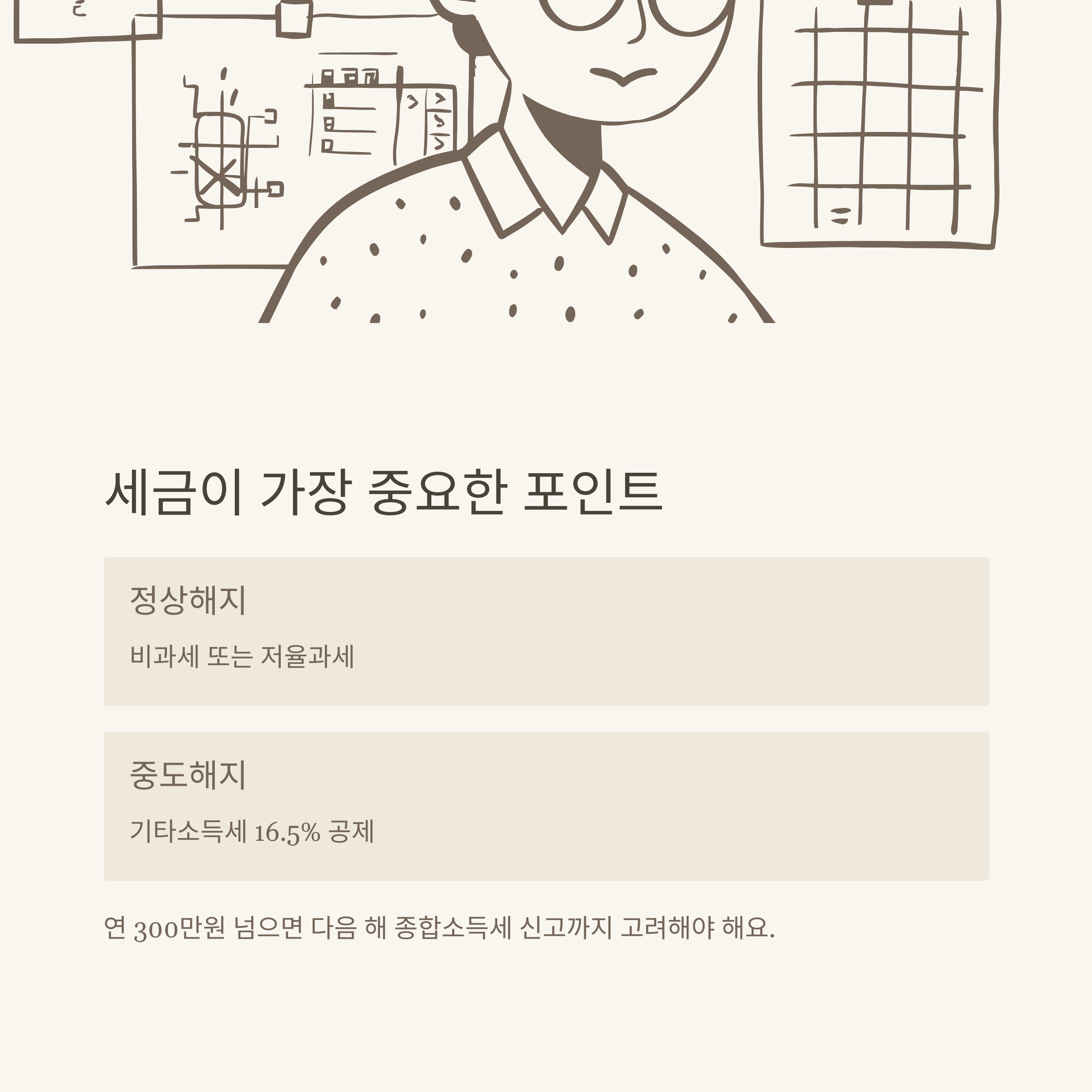 - 연 300만 원 초과 시 종합소득세 신고 필요