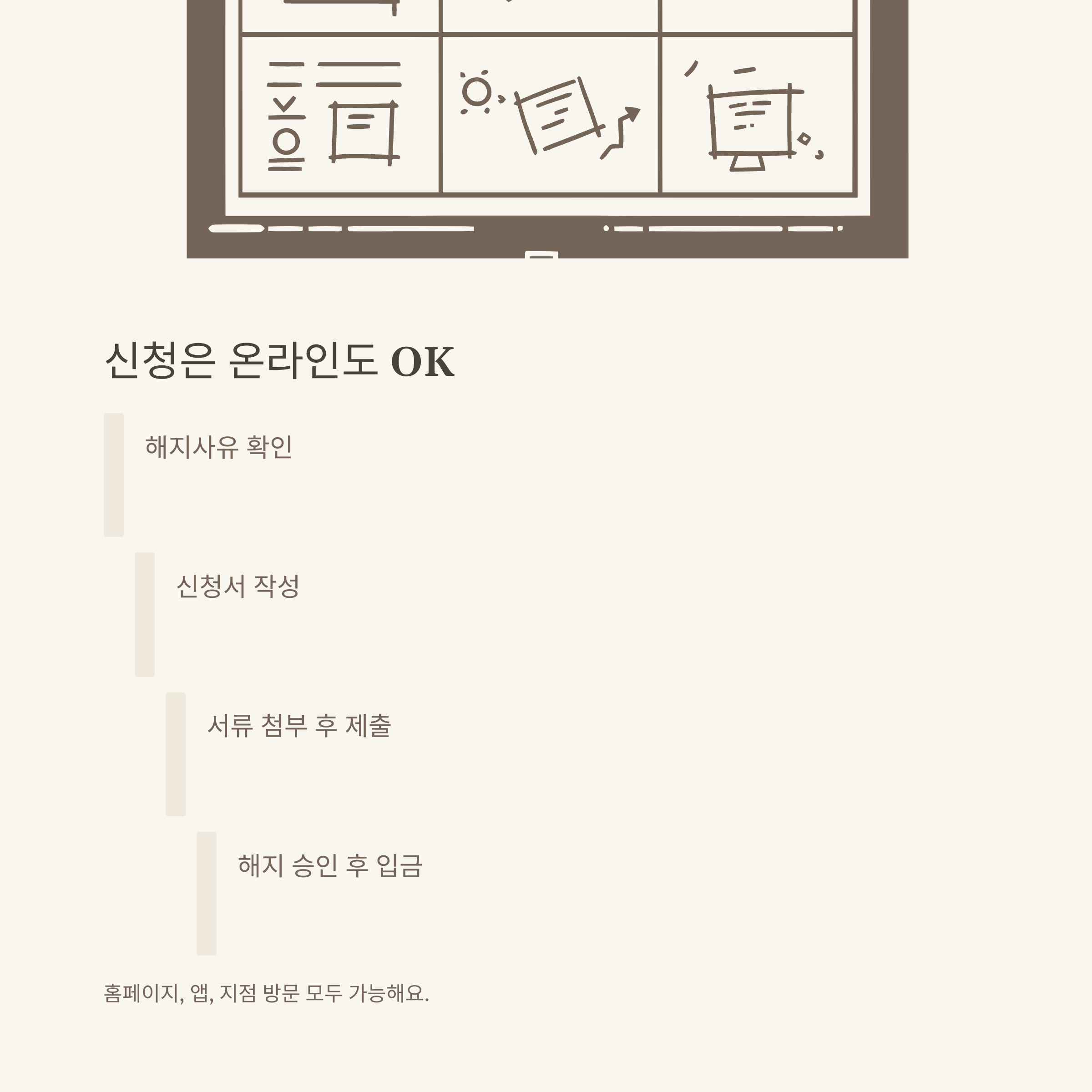 특히 정상해지(폐업·사망 등)는 비교적 간단했지만, 중도해지나 기타 사유는 별도의 소명서류, 상황설명서, 추가 보완자료가 요구될 수 있었습니다. 저의 경우, 폐업사실증명원과 통장사본만으로 간단하게 진행이 됐지만, 지점마다 추가 요청이 다를 수 있습니다.