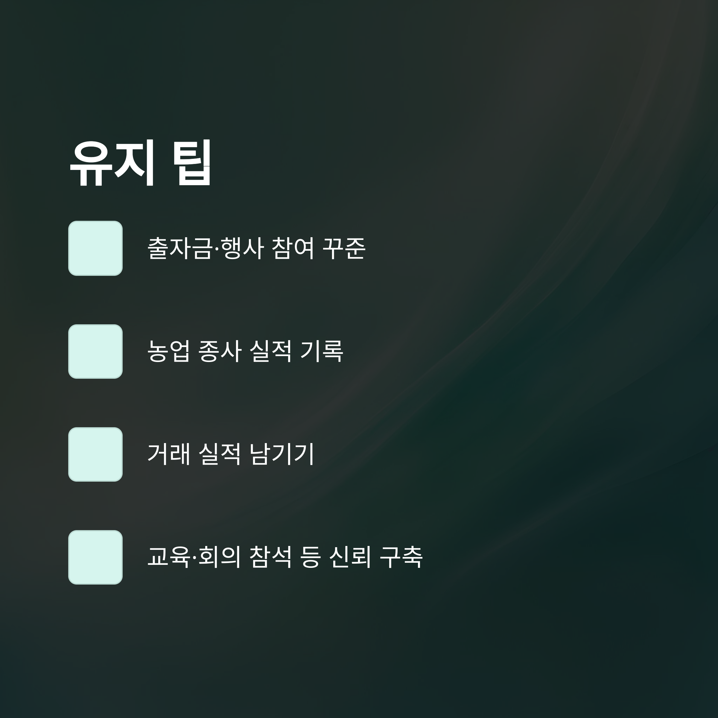 제가 3년간 조합원 자격을 유지하면서 가장 중요하게 느꼈던 부분은 바로 “꾸준함”이었습니다. 단기 성과보다도, 농협과의 지속적인 거래와 신뢰를 쌓는 게 핵심이에요.