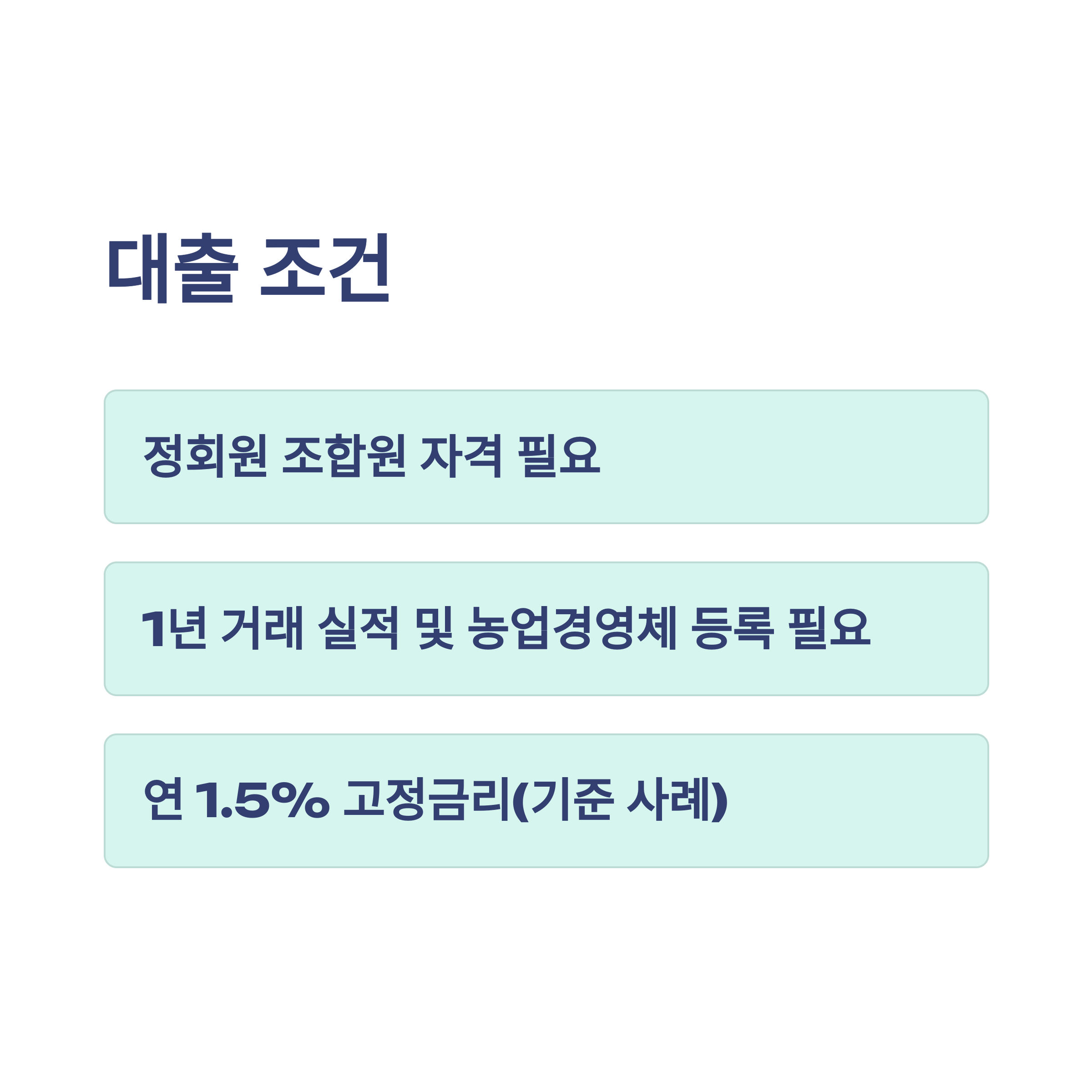 대출 신청 시 조합원 여부를 우선 심사하게 되며, 농업정책자금 통합지원시스템에도 해당 상품들이 연계됩니다. 농협 지점에 따라 지원 규모는 다르니 상담이 필수입니다.