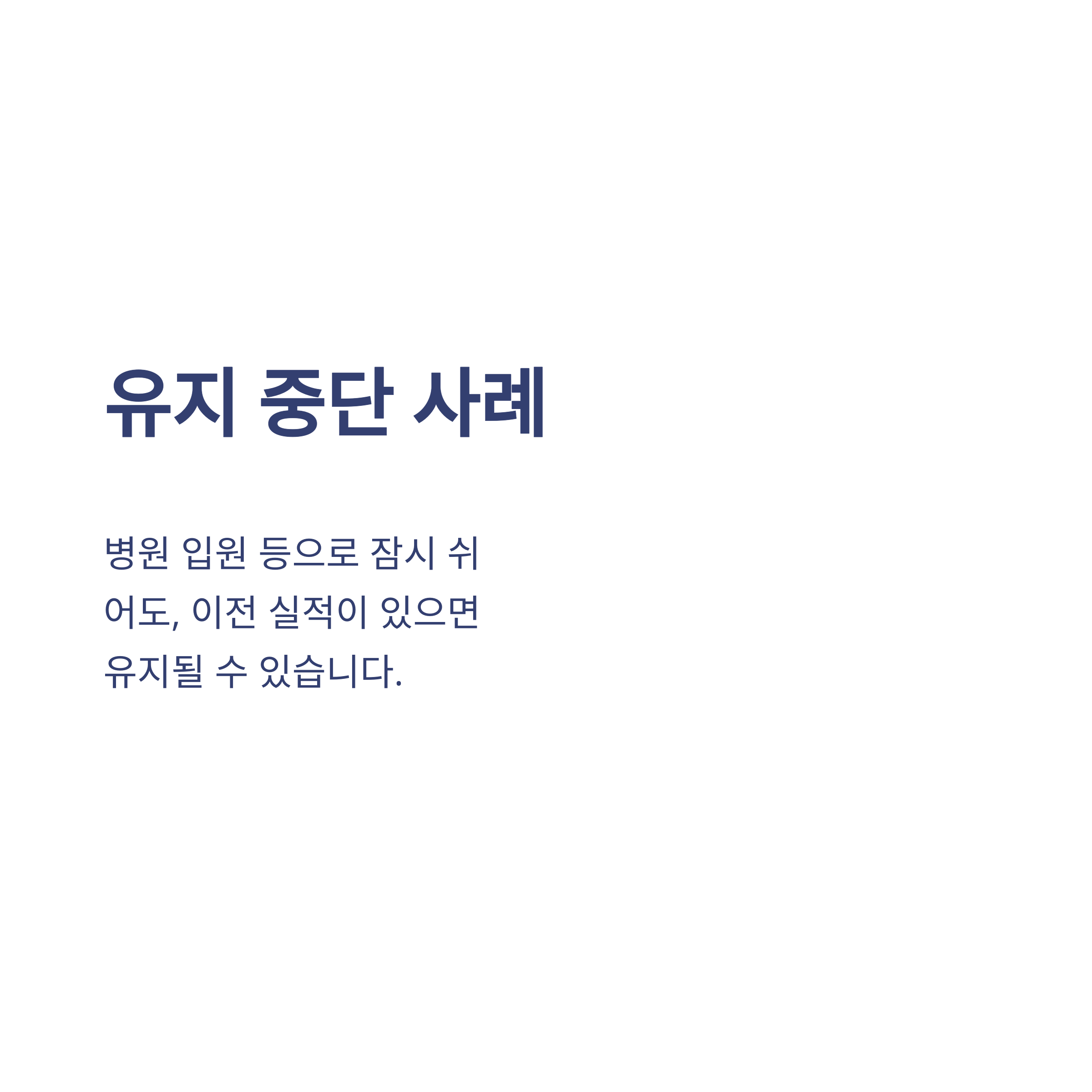 - 자격 유지가 어려운 시기엔 어떻게 하나요? → 병원 치료, 천재지변 등은 이사회 판단으로 예외 인정 가능