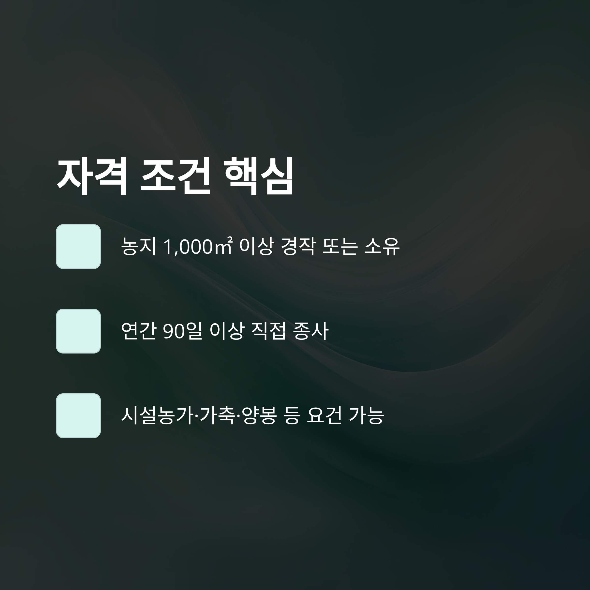 - 1,000㎡ 이상 농지를 경작하거나 소유하고 실제 농업에 종사