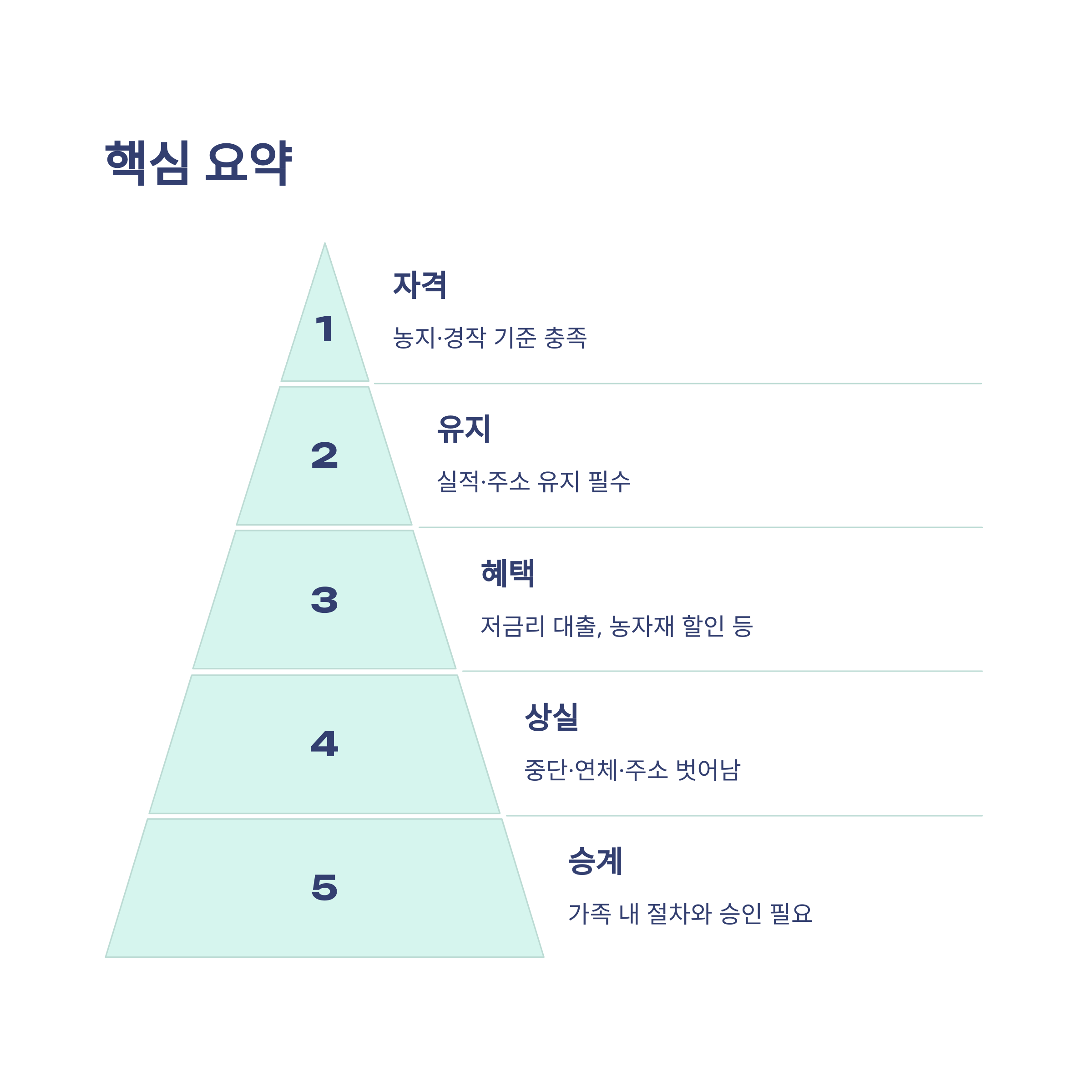 | 자격 상실 조건 | 경작 중단, 연체, 관할 외 이사 등 |