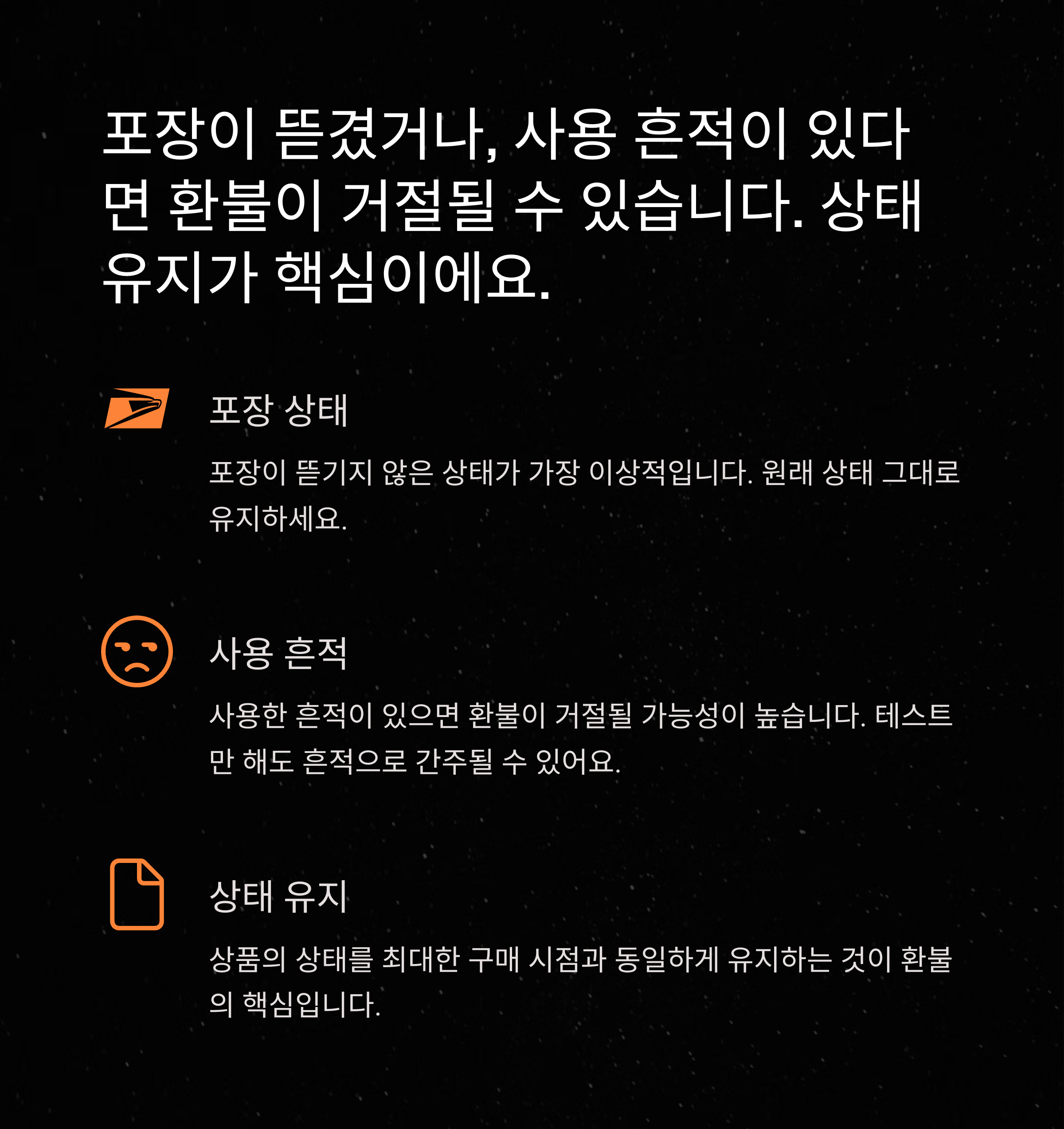 | 필수 조건 | 영수증 보유, 미개봉 |