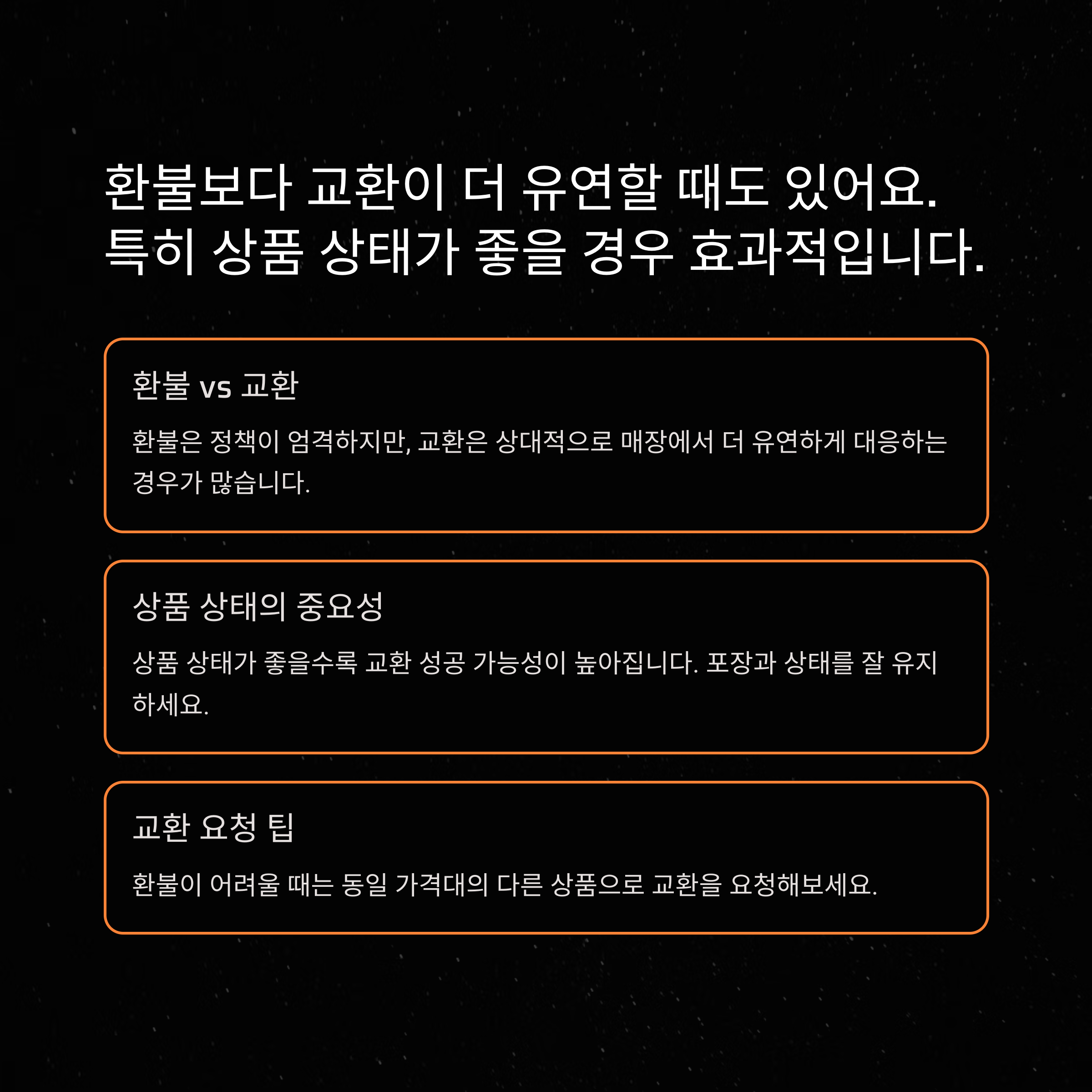 환불이 어려울 때 교환도 고려해야 하는데, 둘은 다음처럼 차이가 있습니다: