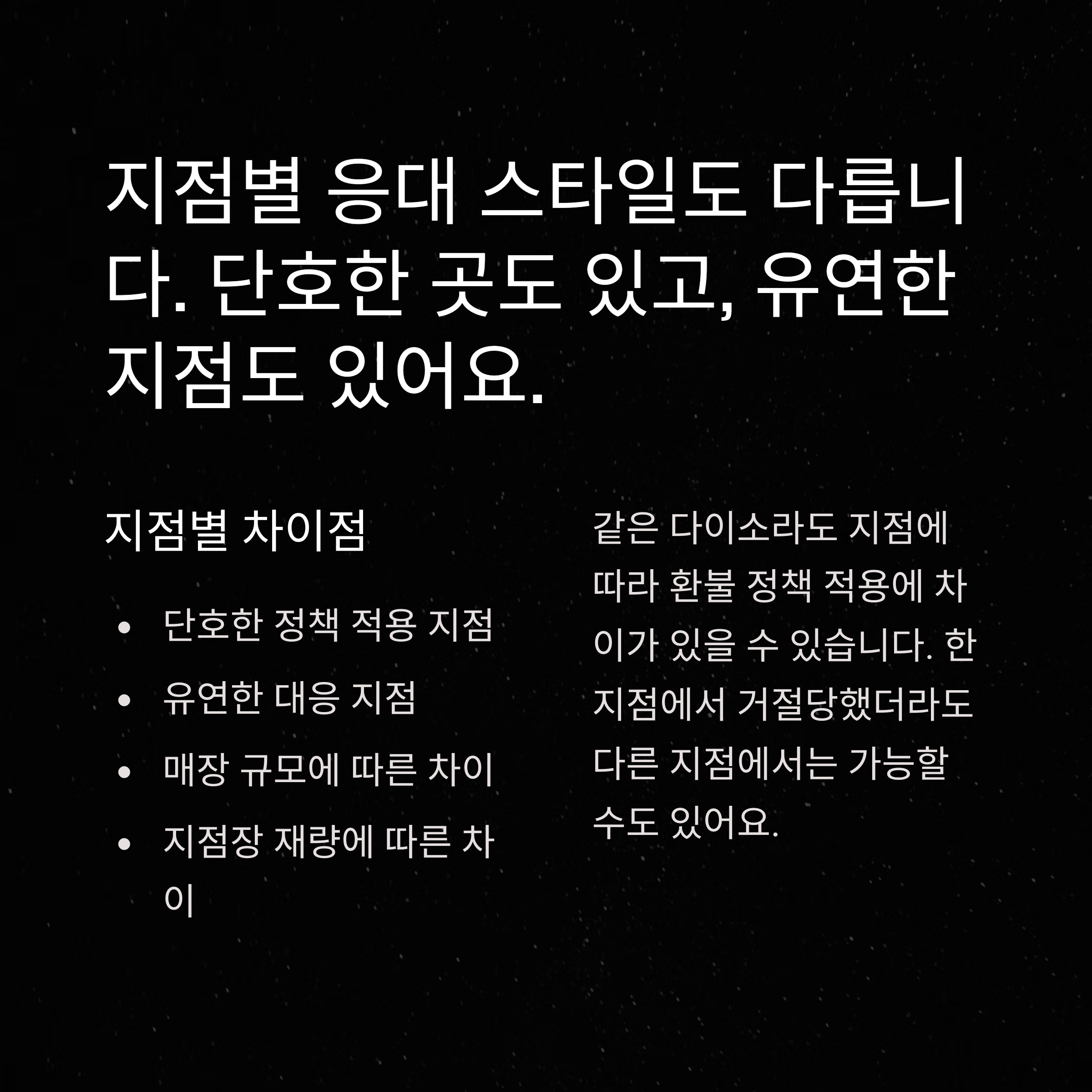| 지점 | 응대 방식 | 환불 유연성 |