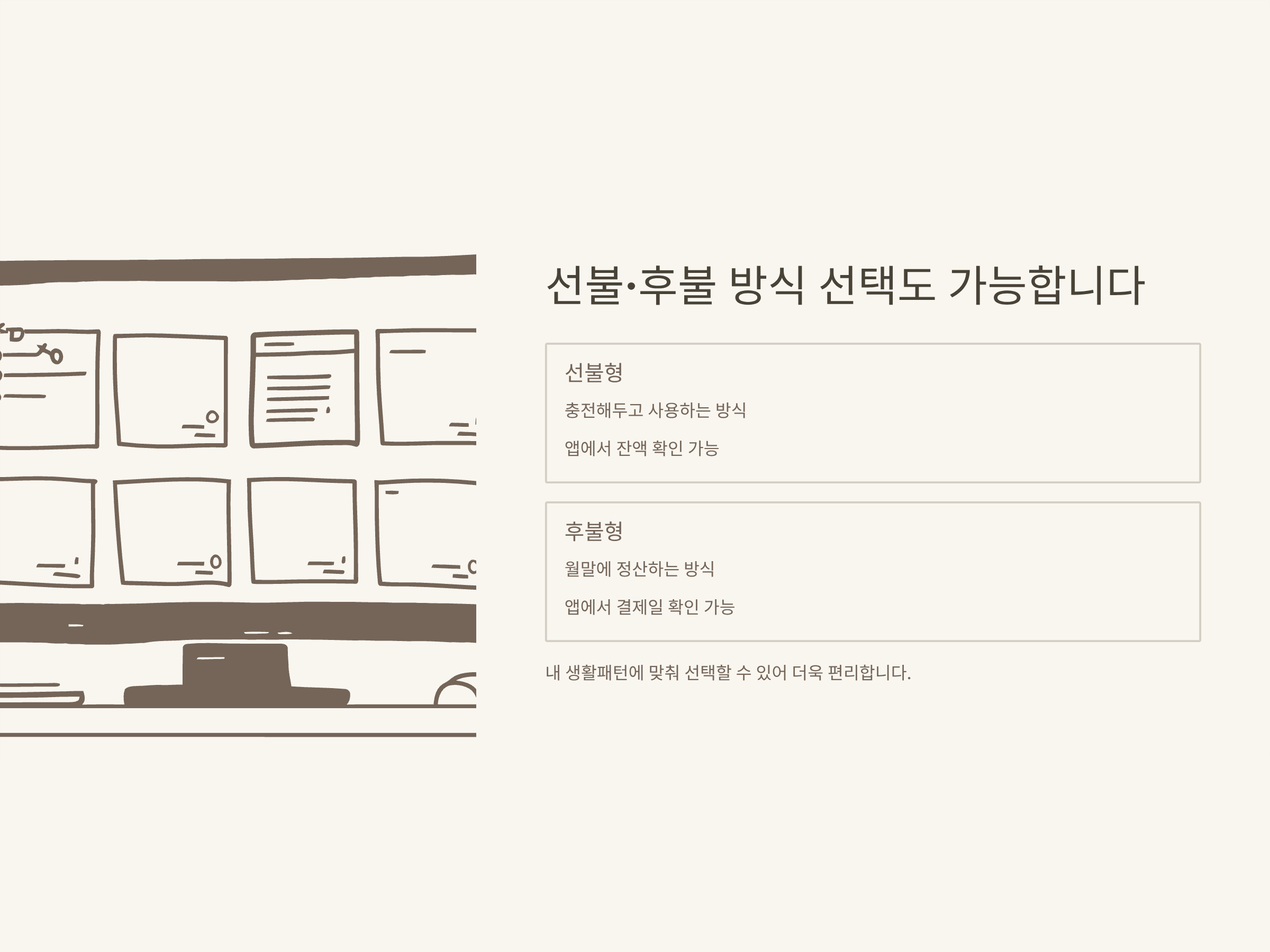 | 충전 | 필수(잔액 내 결제) | 불필요(한도 내 자동 결제) |