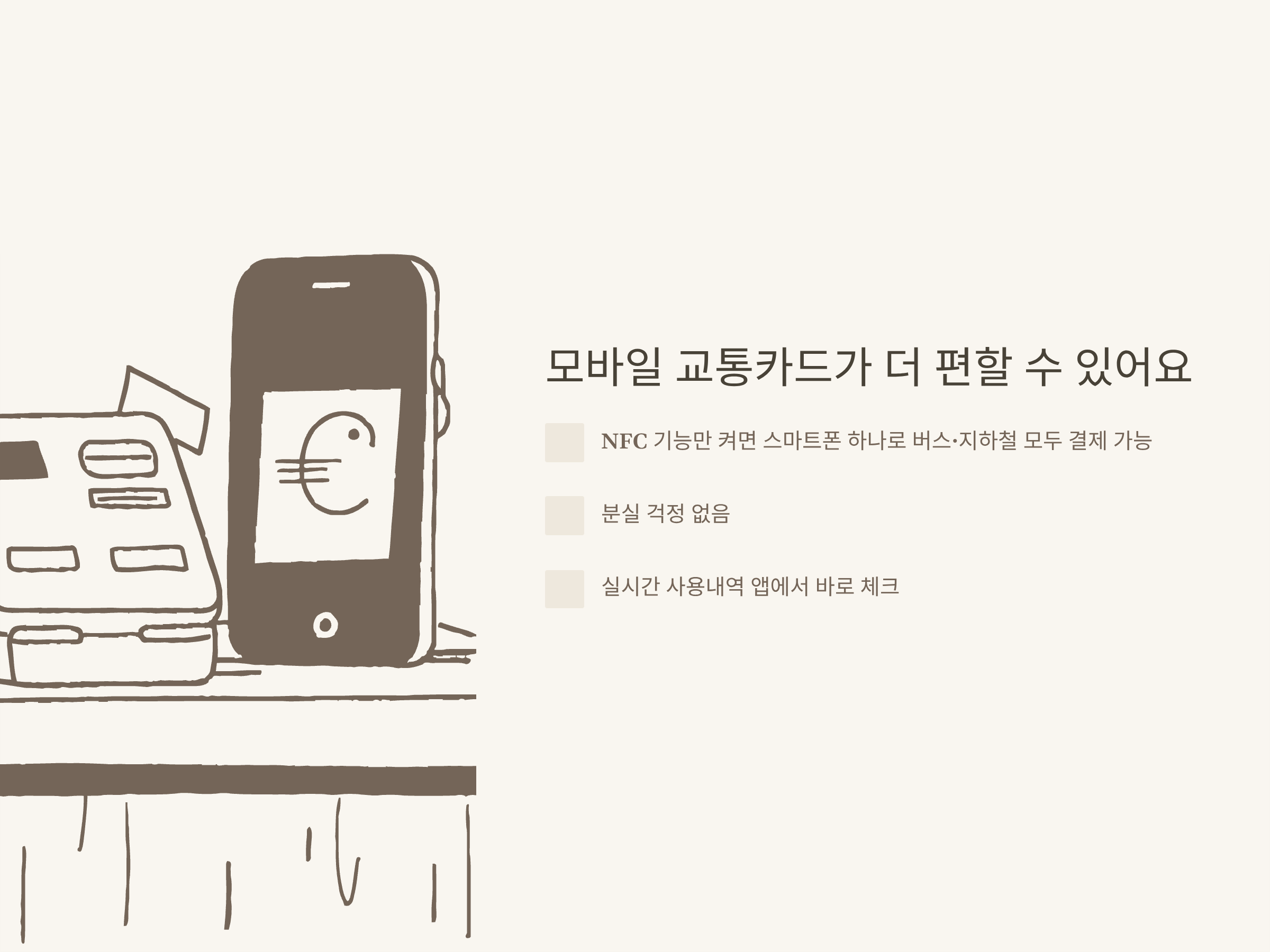- 모바일 교통카드는 분실 위험이 없고, 즉시 재발급·차단 가능
