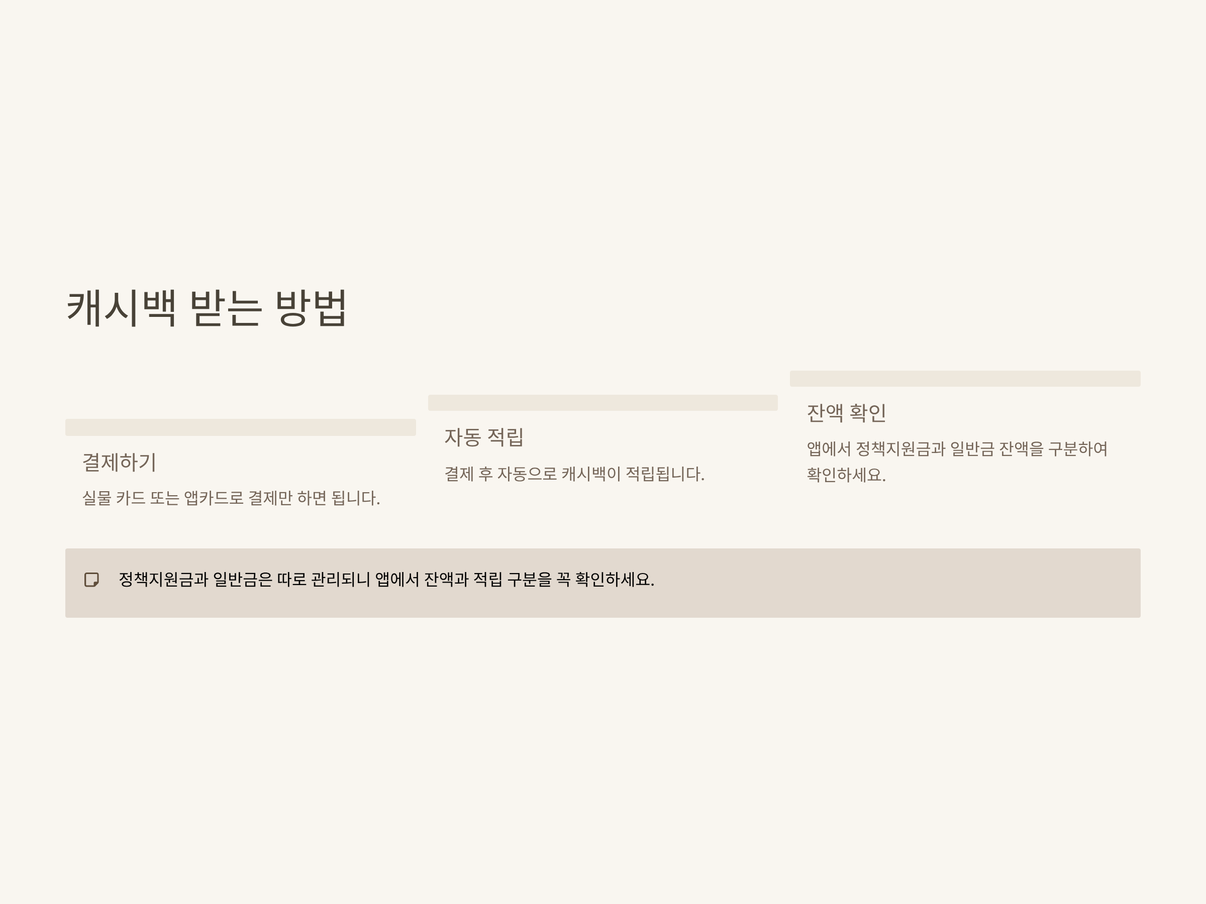 | 구분 | 정책지원금 캐시백 | 일반 충전금 캐시백 | 체감 팁 |