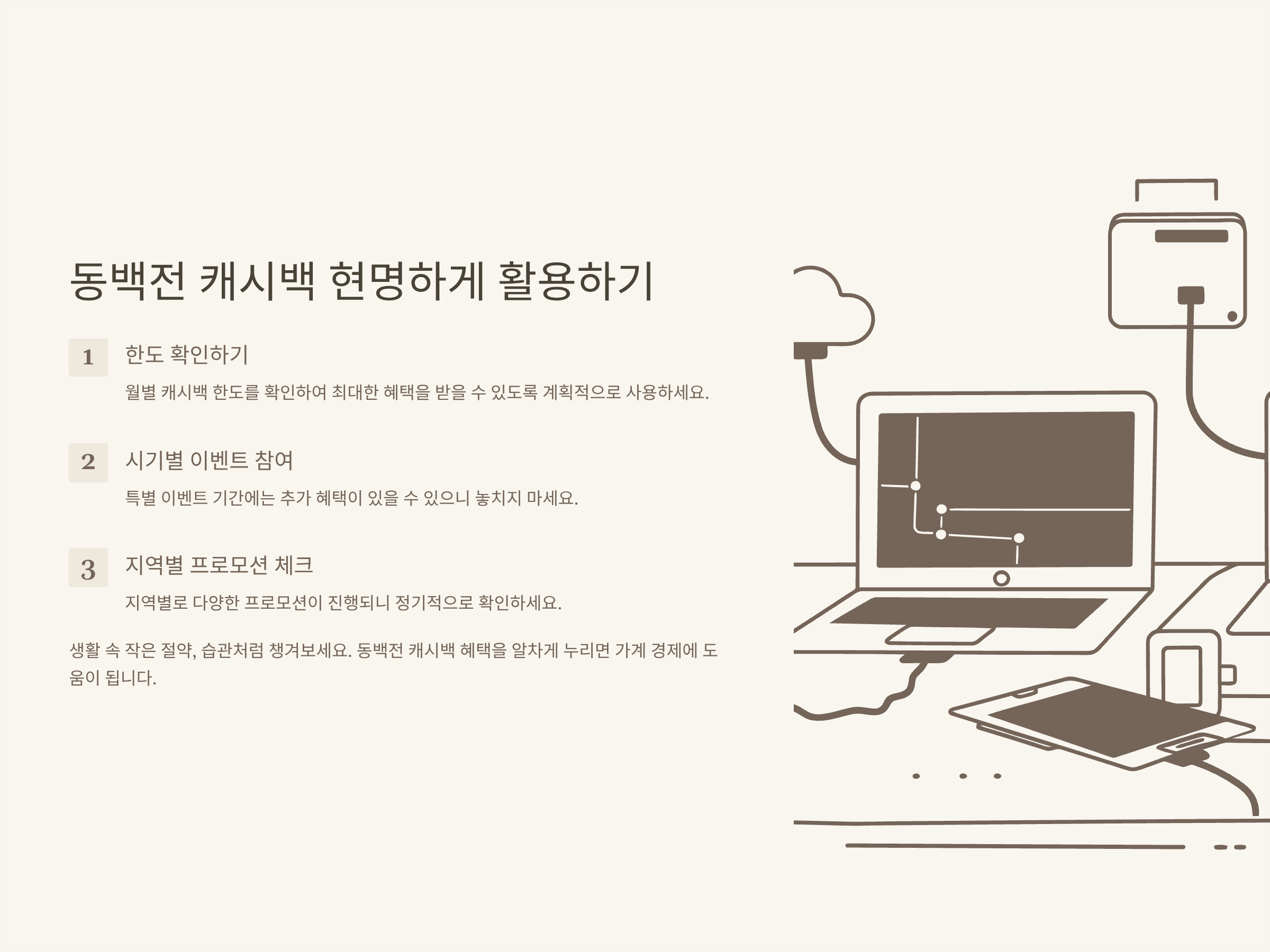 동백전 캐시백, 저도 꾸준히 사용해오며 월별 이벤트·공지사항을 놓치지 않고 챙기는 게 정말 중요하다고 느꼈습니다. 실제로 공식 홈페이지와 동백전 앱을 자주 확인하면 예상치 못한 추가 캐시백이나, 한정 지역 프로모션 정보도 받을 수 있으니 꼭 활용해보세요.
