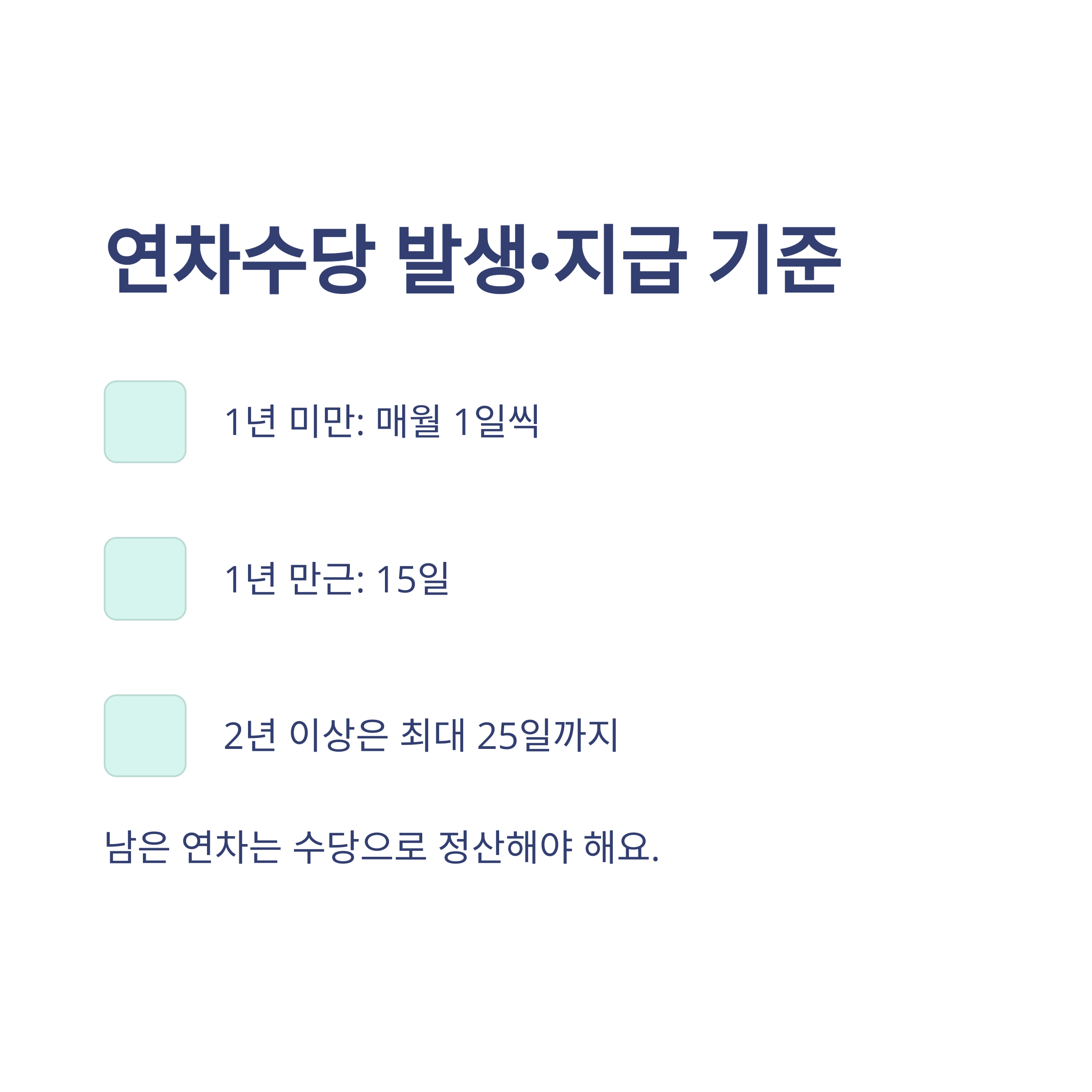 자세한 기준은 노동부 연차수당 청구 안내에서 확인 가능합니다.
