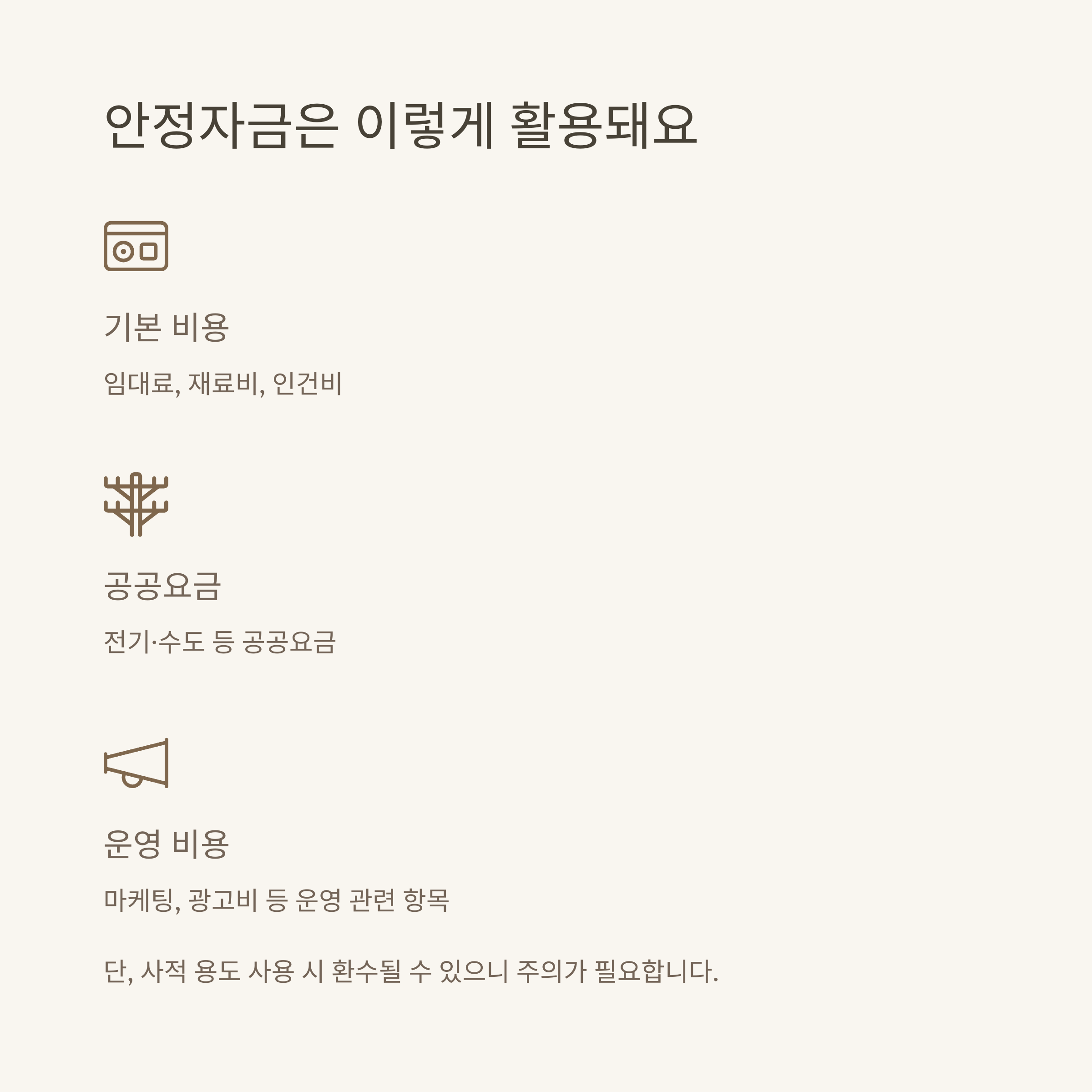 제가 실제로 자금을 사용한 건 대부분 임대료와 재료비, 급여 일부였어요. 당시 매출이 반 이상 줄었는데, 직원 월급이 밀리면 신뢰도 무너지는 상황이라 부담이 컸거든요. 대표적인 활용 용도는 다음과 같습니다: