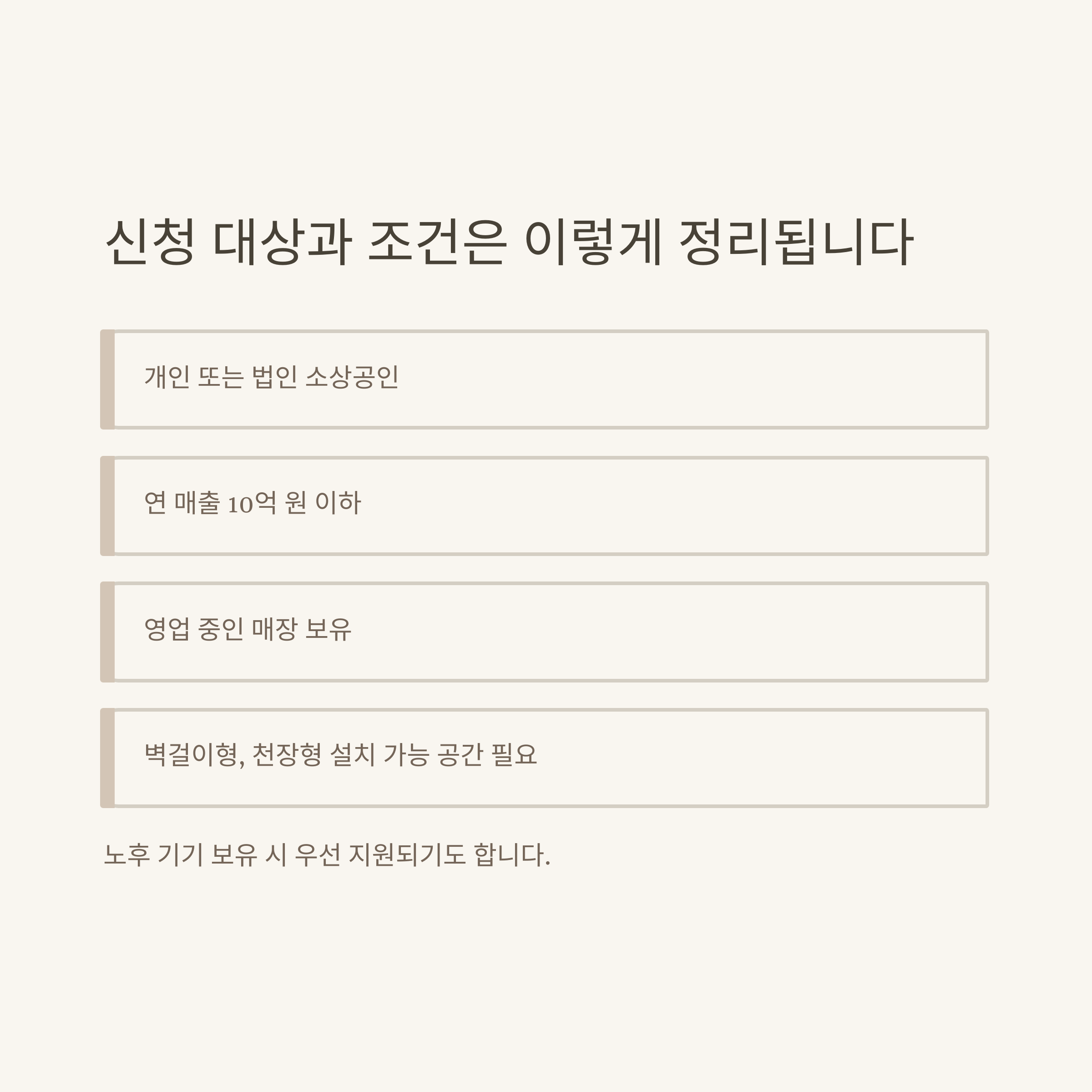 - 기존 에어컨이 있는 매장은 지원 제외되는 경우 있음