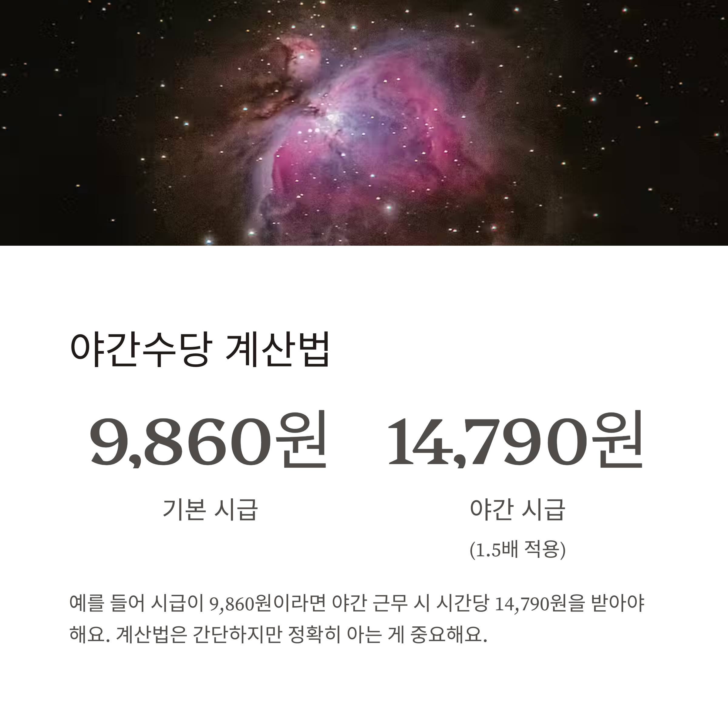 야간수당 기준 총정리|1.5배 계산법부터 알바·편의점 야간수당까지 완벽 가이드