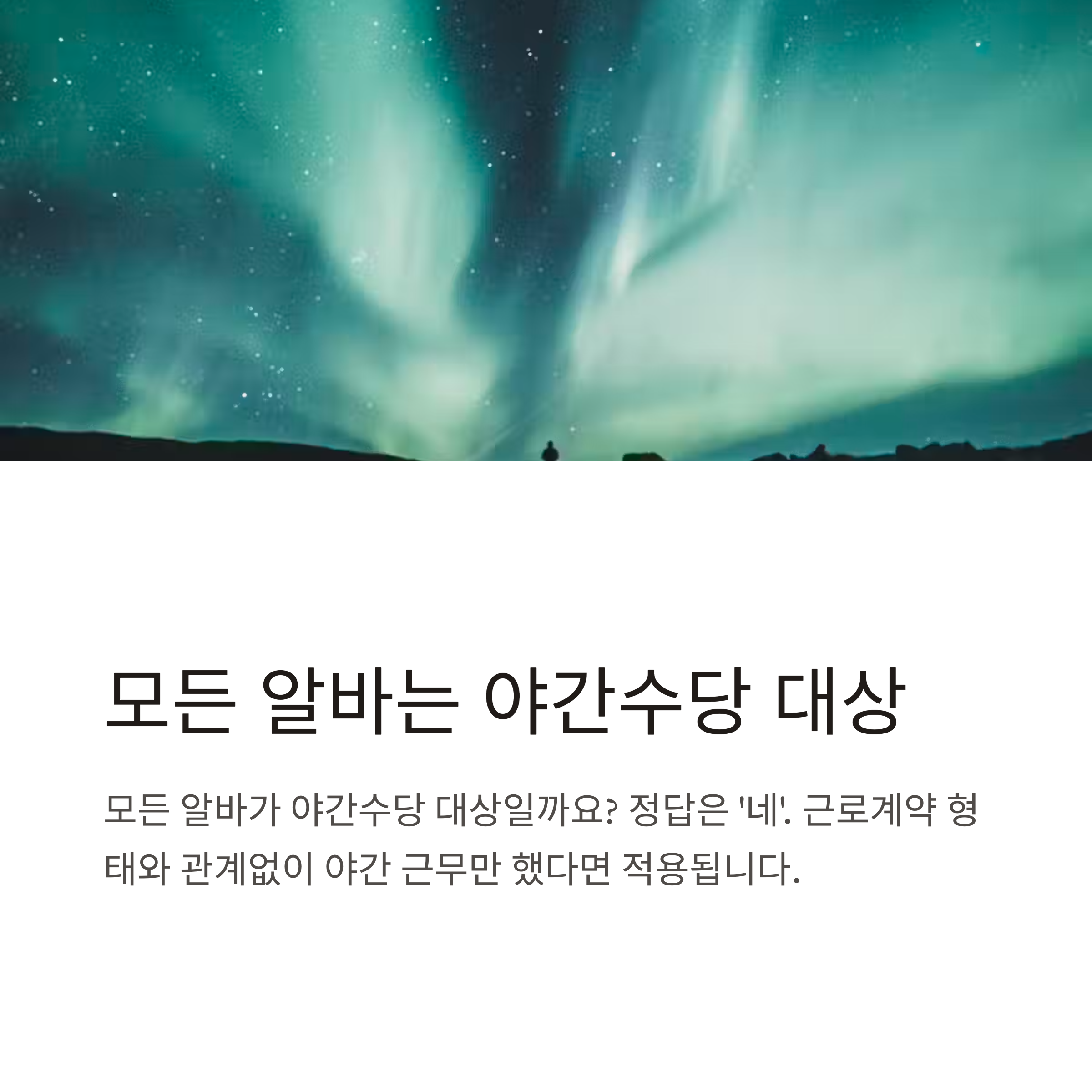 고용노동부 Q&A에 따르면 알바도 다음 조건을 만족하면 야간수당 대상입니다: