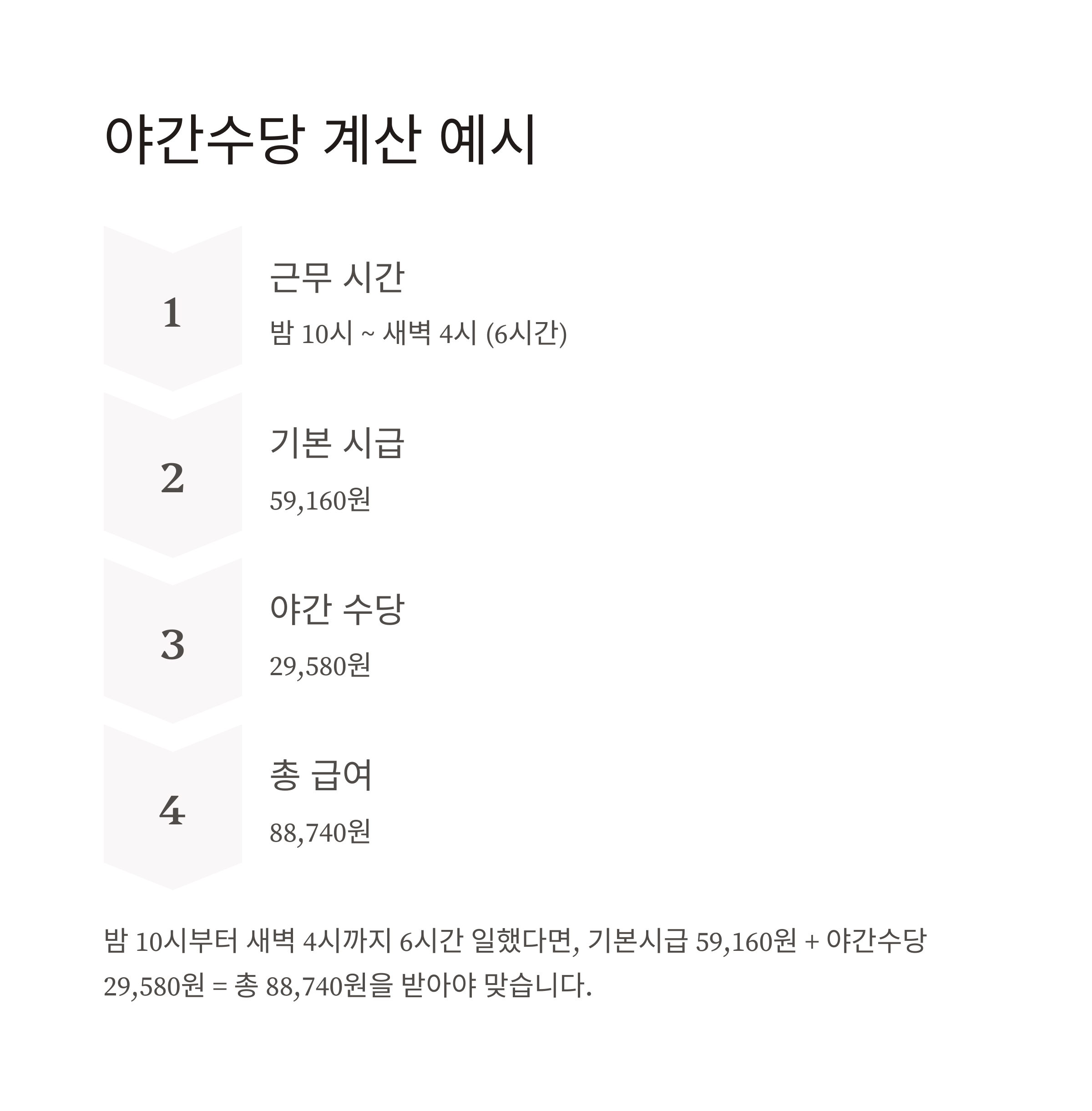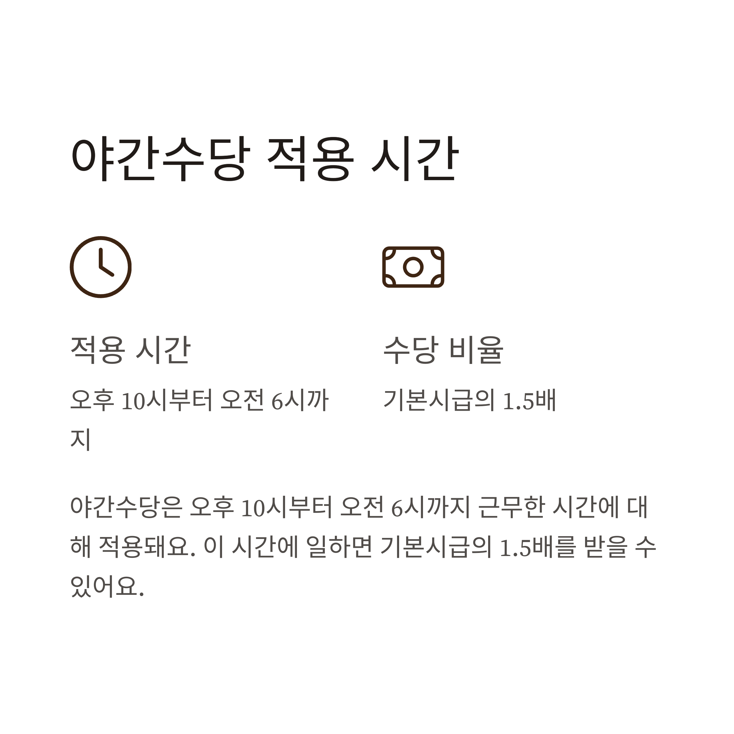 - 야간시간: 오후 10시 ~ 익일 오전 6시