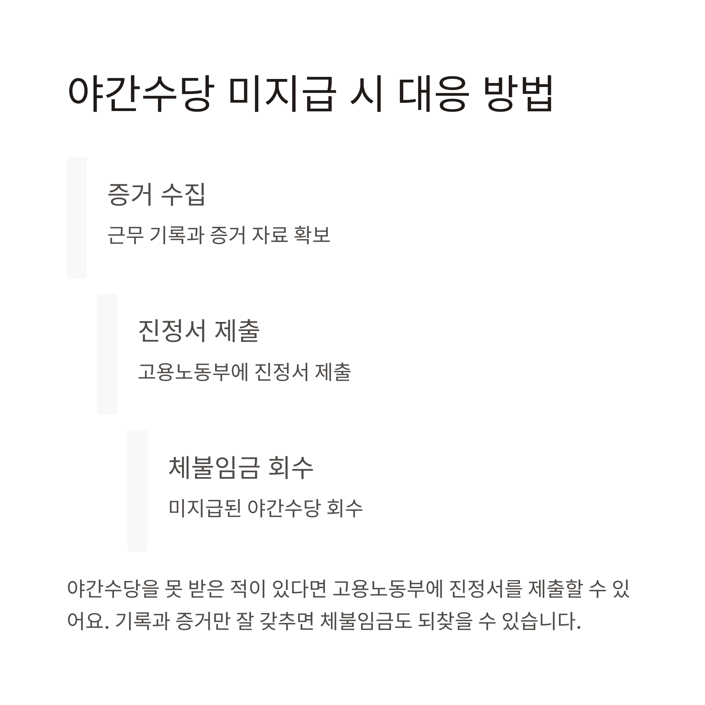 - 야간수당 미지급 사실만 명확히 제기 (다른 문제 혼합 금지)