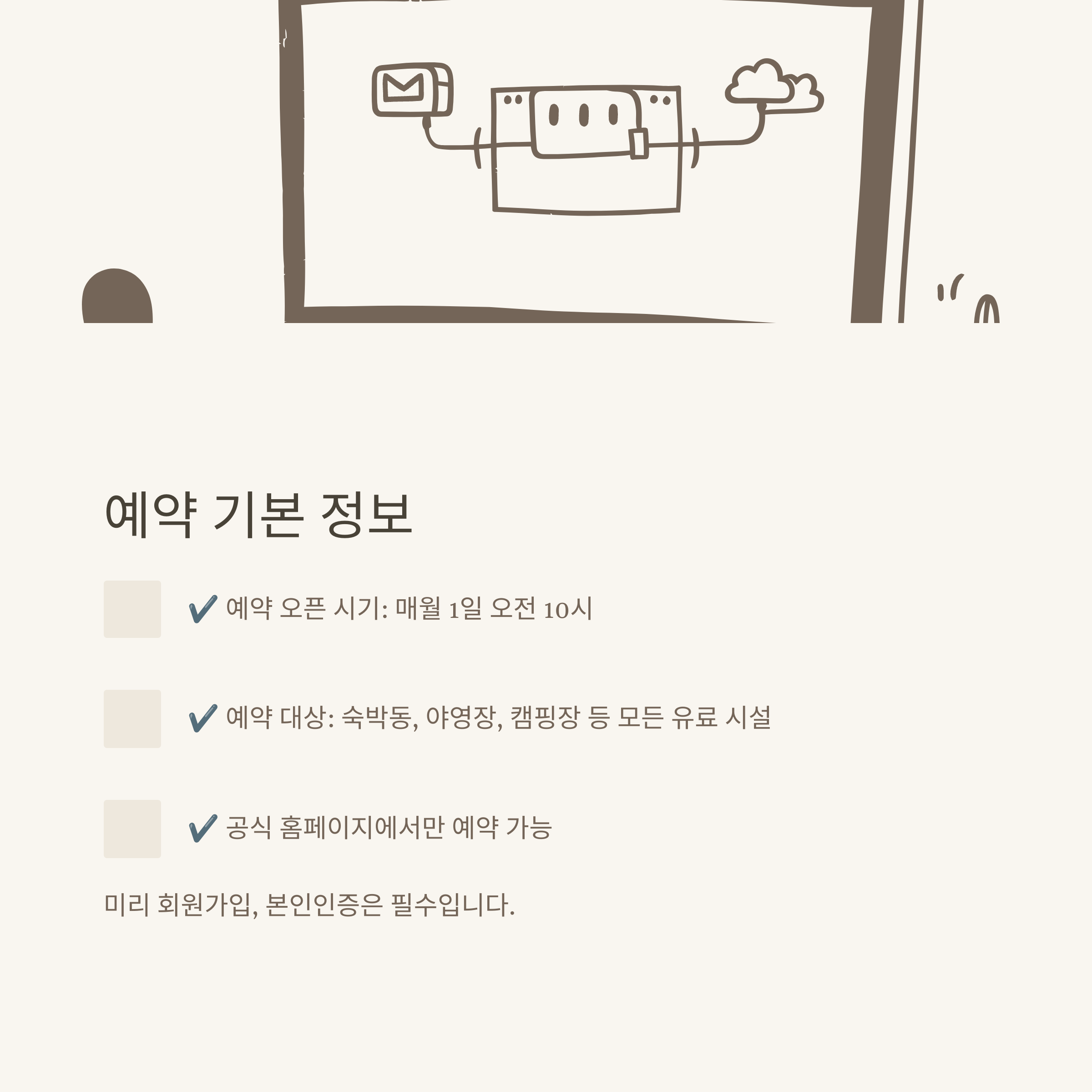 가끔 “그냥 가면 되는 거 아니야?”라고 생각하시는 분들도 계시죠. 저도 한 번은 예약 없이 방문했다가, 숙박은 물론 데크, 캠핑장 등 모든 주요 시설 입장이 불가했던 경험이 있습니다.