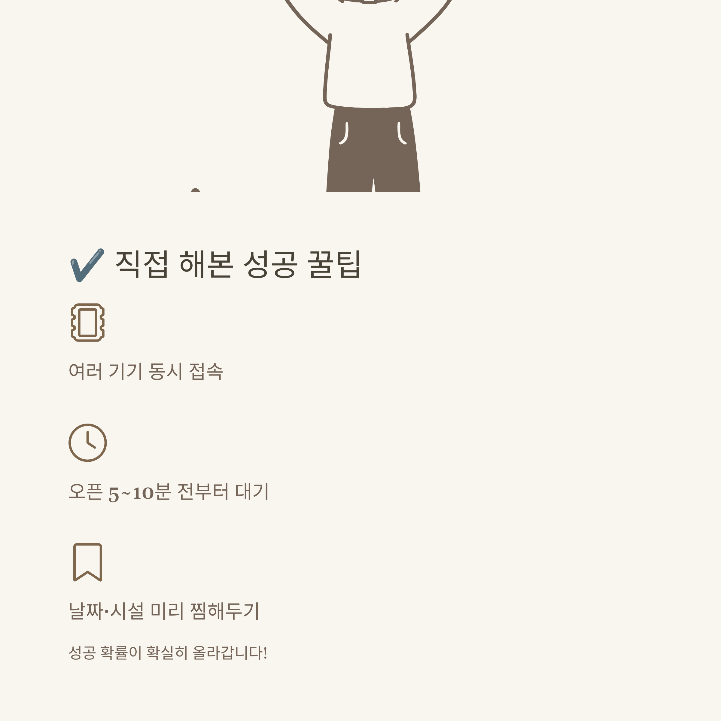 추가로, 대기표를 여러 날짜에 중복으로 걸어두면 확률이 더 높아집니다. 저는 네이버 예약 알림, 문자 알림, 브라우저 알람 등 다양한 방법을 동원해서 취소표가 나오는 순간 바로 접속하곤 했어요.
