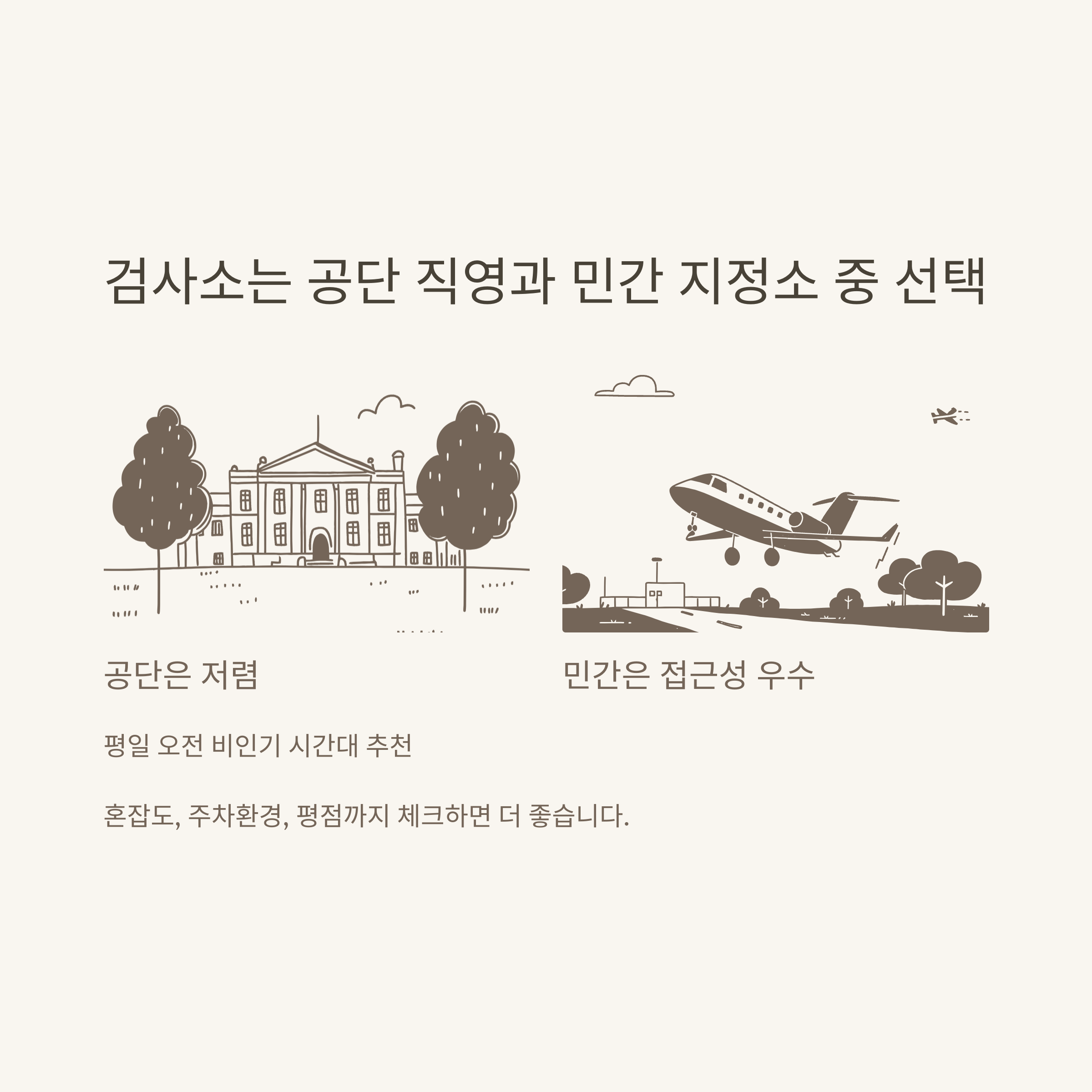 - 검사소별 혼잡도·주차장 유무·부대시설 확인 권장