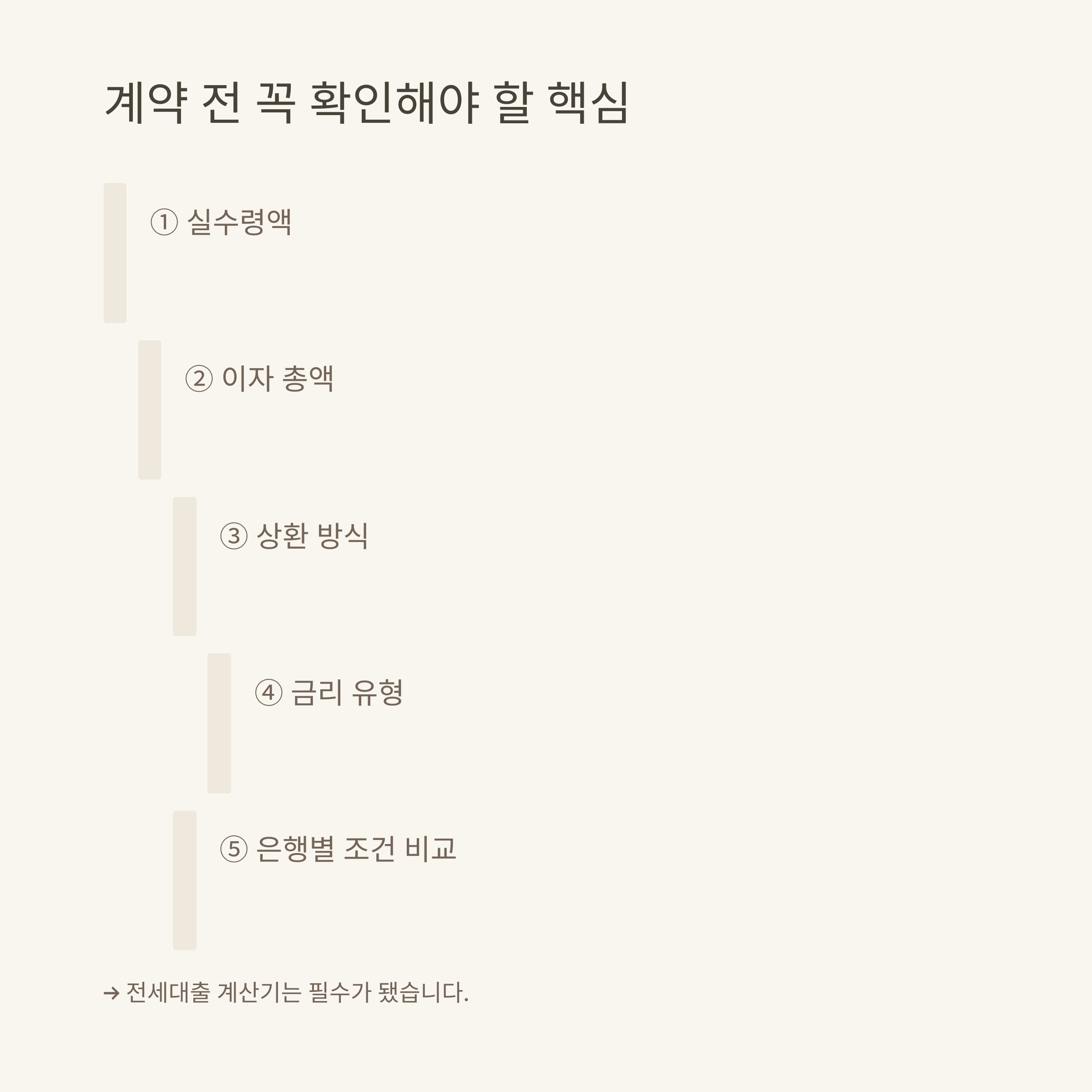 아파트 전세대출 계산법은 생각보다 단순합니다. 대출금액 × 연이자율 × 대출기간(년)이 이자의 기본 공식이죠. 그러나 실제로는 대출금 상환 방식(원리금균등, 원금균등, 만기일시)에 따라 월 상환액, 총 이자액이 달라집니다. 저는 실제 계약 때 상환 방식에 따라 매달 부담이 얼마나 달라지는지 꼭 비교해보고 결정했어요.