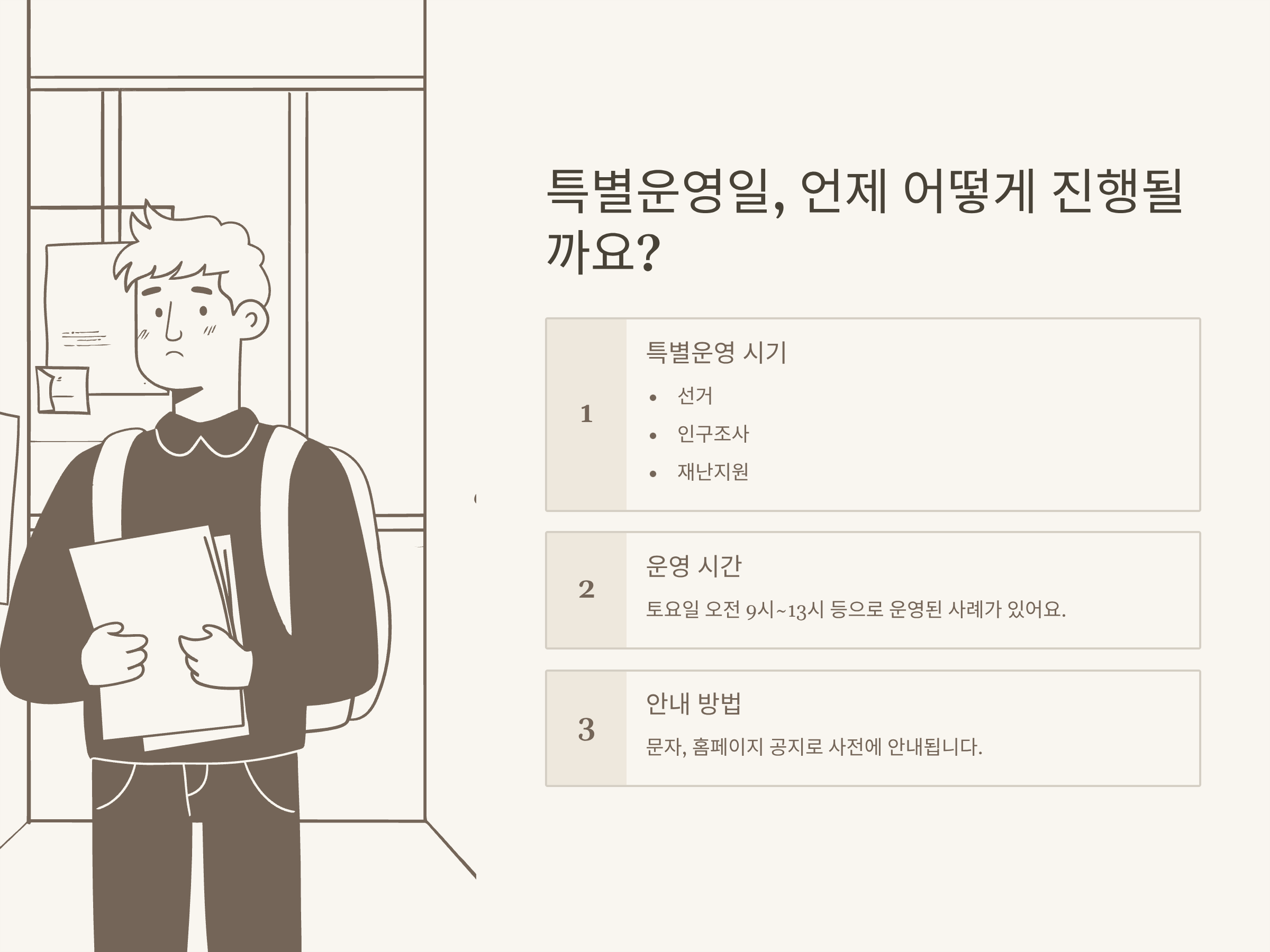 특별운영은 보통 사전 문자, 홈페이지 공지 등으로 안내