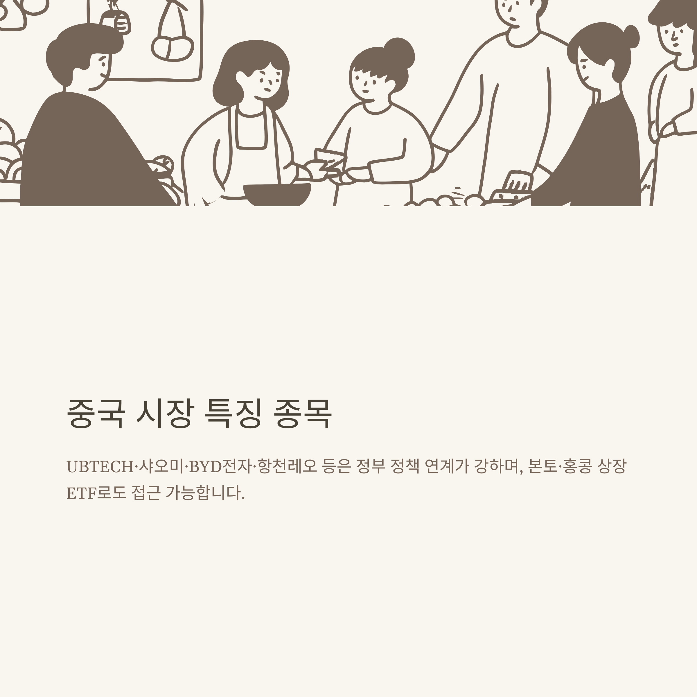 중국 로봇주는 미국, 한국과 달리 정책 이슈와 ‘중국판 챗GPT’ 같은 대형 테마와도 연동되는 경우가 많아, 한 번 이슈가 터지면 단기간에 주가가 폭등하는 흐름이 잦았습니다. 실제 투자 시에는 상장 모회사(샤오미, BYD전자 등), 로봇·AI 소프트웨어 협업사, 부품 공급망까지 종합적으로 체크해야 리스크를 줄일 수 있습니다. 최근에는 홍콩·중국 ETF 상품도 다양하게 출시돼서 분산 투자 접근이 한결 쉬워졌습니다.