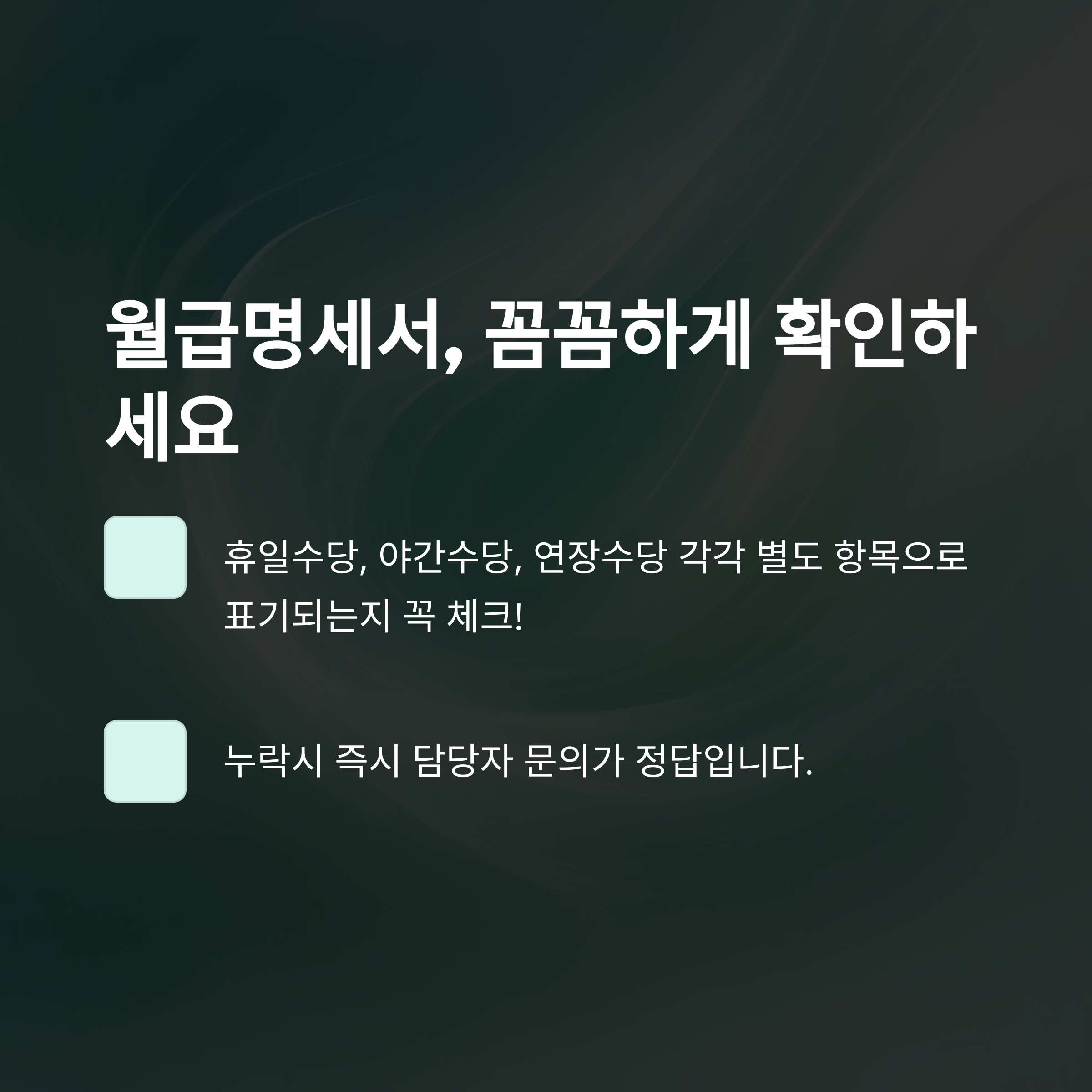 | 명세서 표기 | 휴일수당 별도 항목 | 누락·오류 확인 |