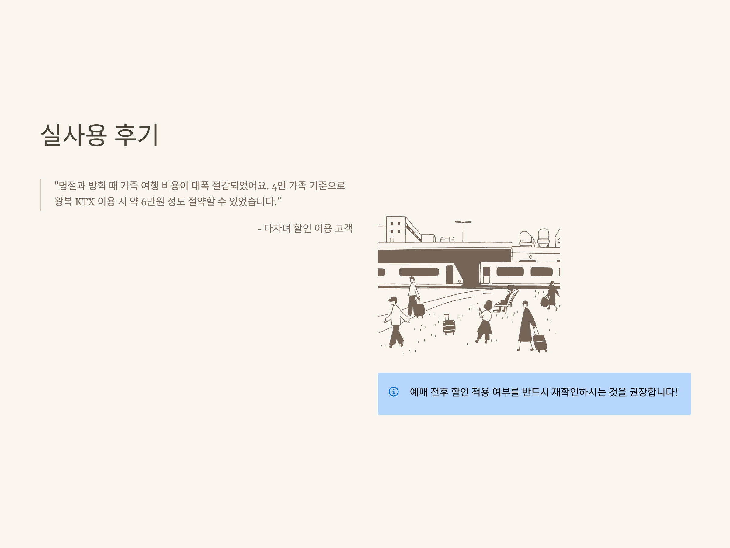 | 할인 적용 | 동반 탑승 시, KTX·ITX·무궁화 일부 노선 |