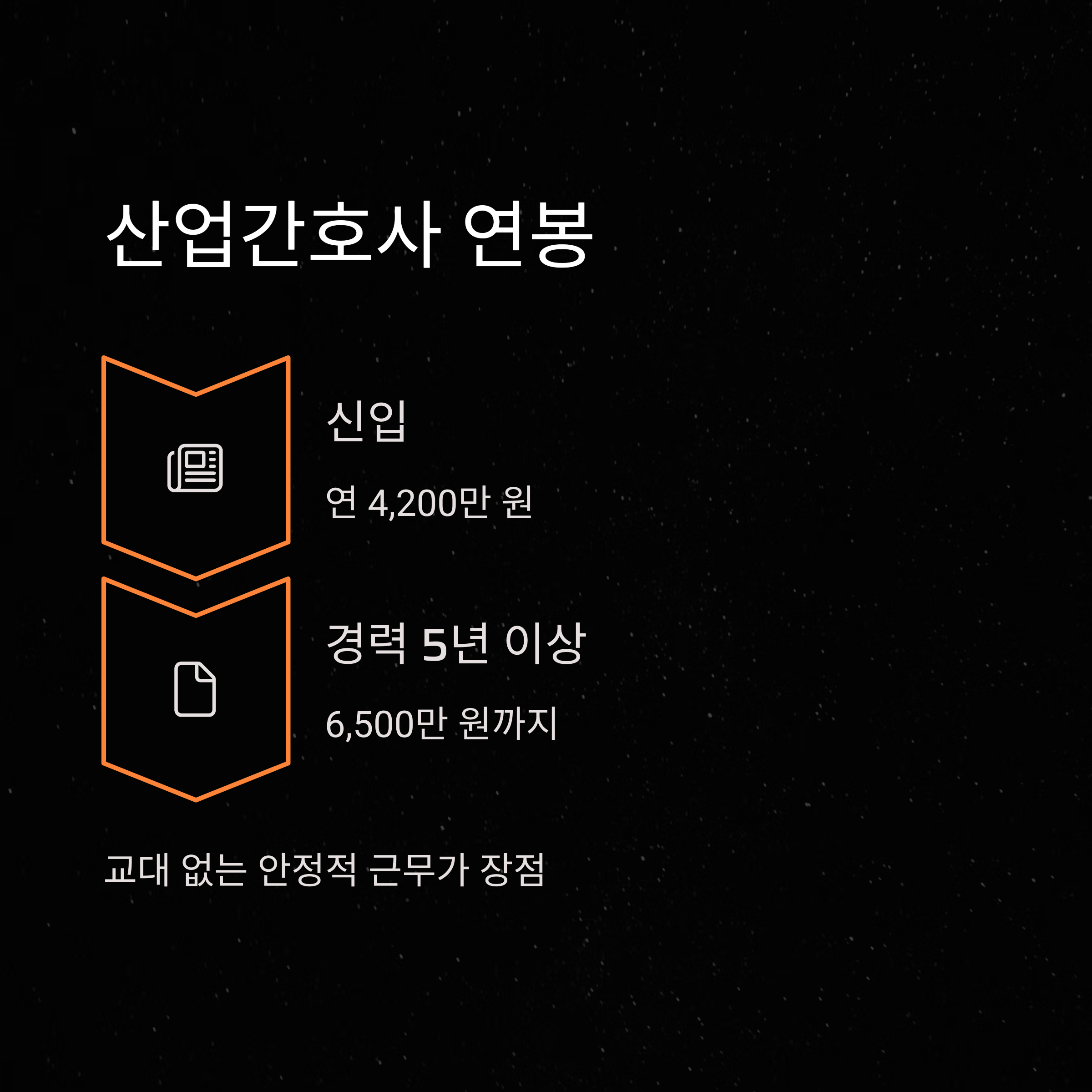 | 산업간호사 | 4,200만 원 | 6,500만 원 | 교대 없음, 복지 우수 |
