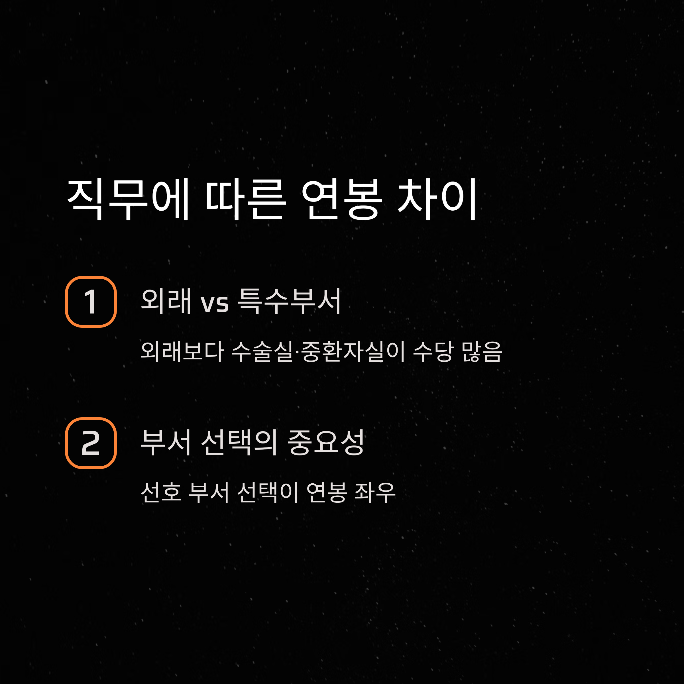 제 동기 중 한 명은 외래 파트에 배정돼 야간이 없어서 월급이 낮았고, 저는 수술실에서 야근이 많아 수당이 월 60만 원 가까이 붙었어요. 병원별 차이도 있지만, 직무 선택이 월급 차이를 만들 수 있다는 걸 꼭 기억하세요.