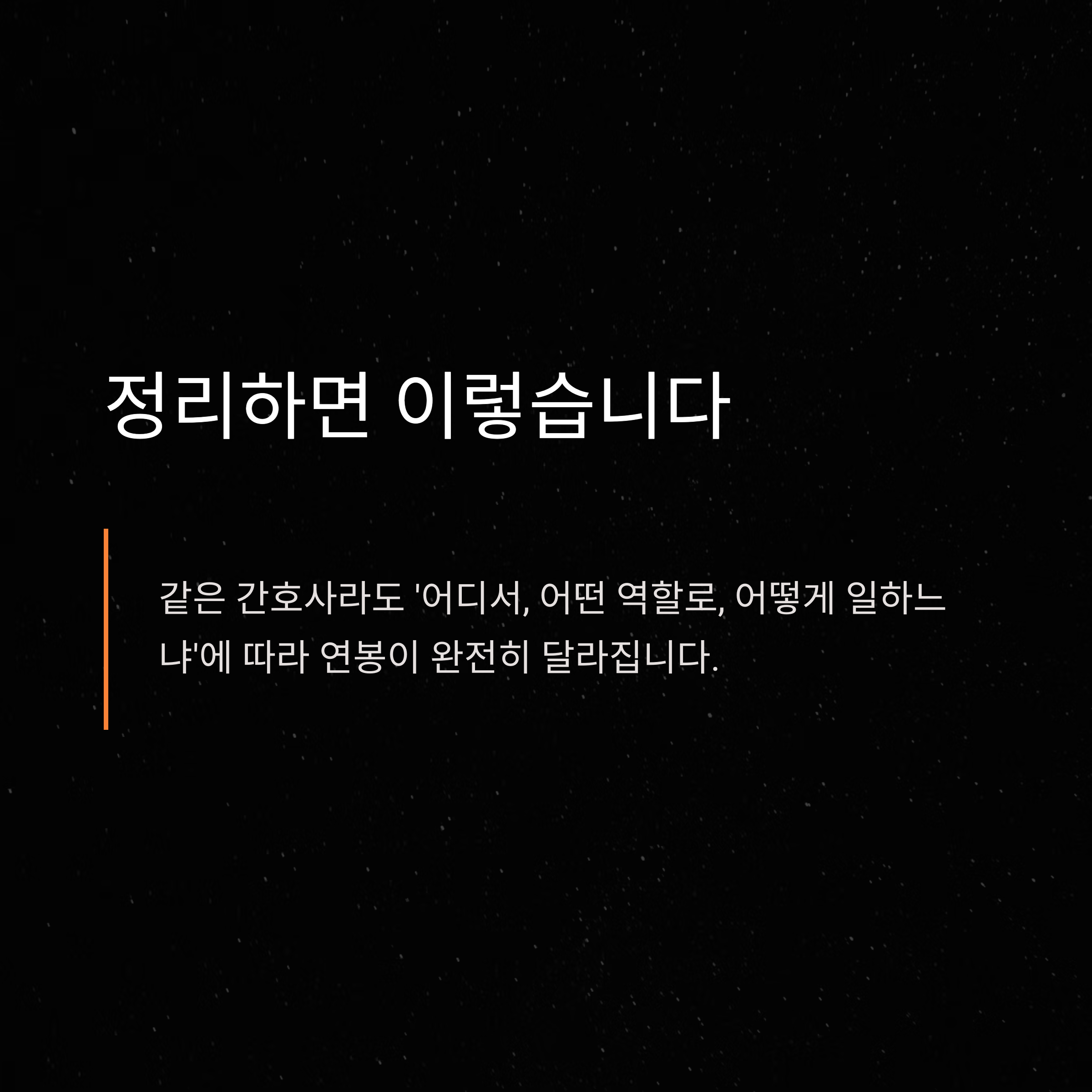 간호사라고 해서 모두 같은 연봉을 받는 게 아니란 걸 저는 입사 1년 만에 깨달았어요. 같은 병동이라도 수술실, 중환자실, 외래, 정신과, 응급실 간호사는 연봉부터 수당까지 차이가 크더라고요.