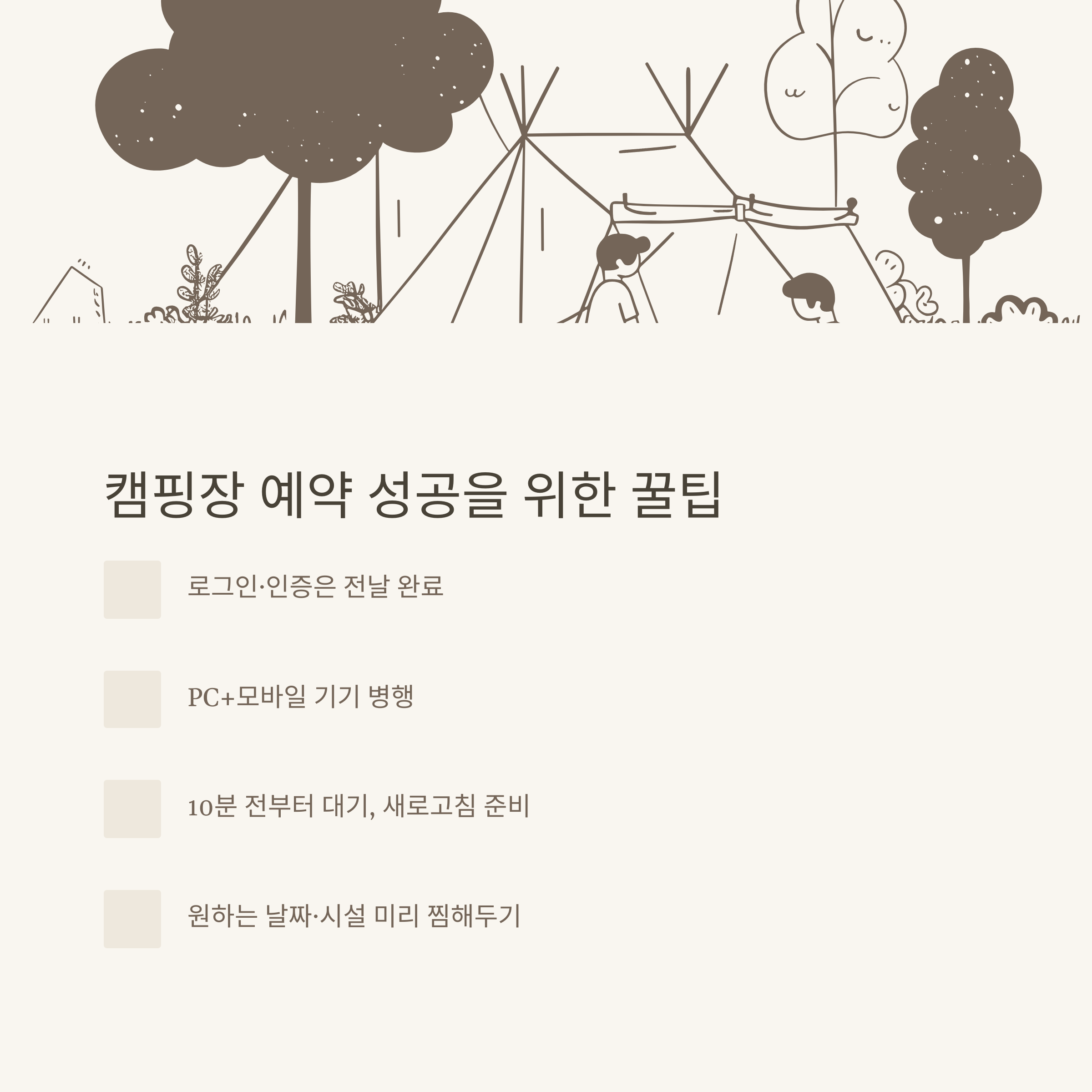 운영 방식과 예약 오픈일, 숙박요금, 캠핑장 형태 등도 다르기 때문에, 원하는 지역을 정확히 확인한 뒤 해당 공식 홈페이지에서만 예약해야 혼선이 없습니다.