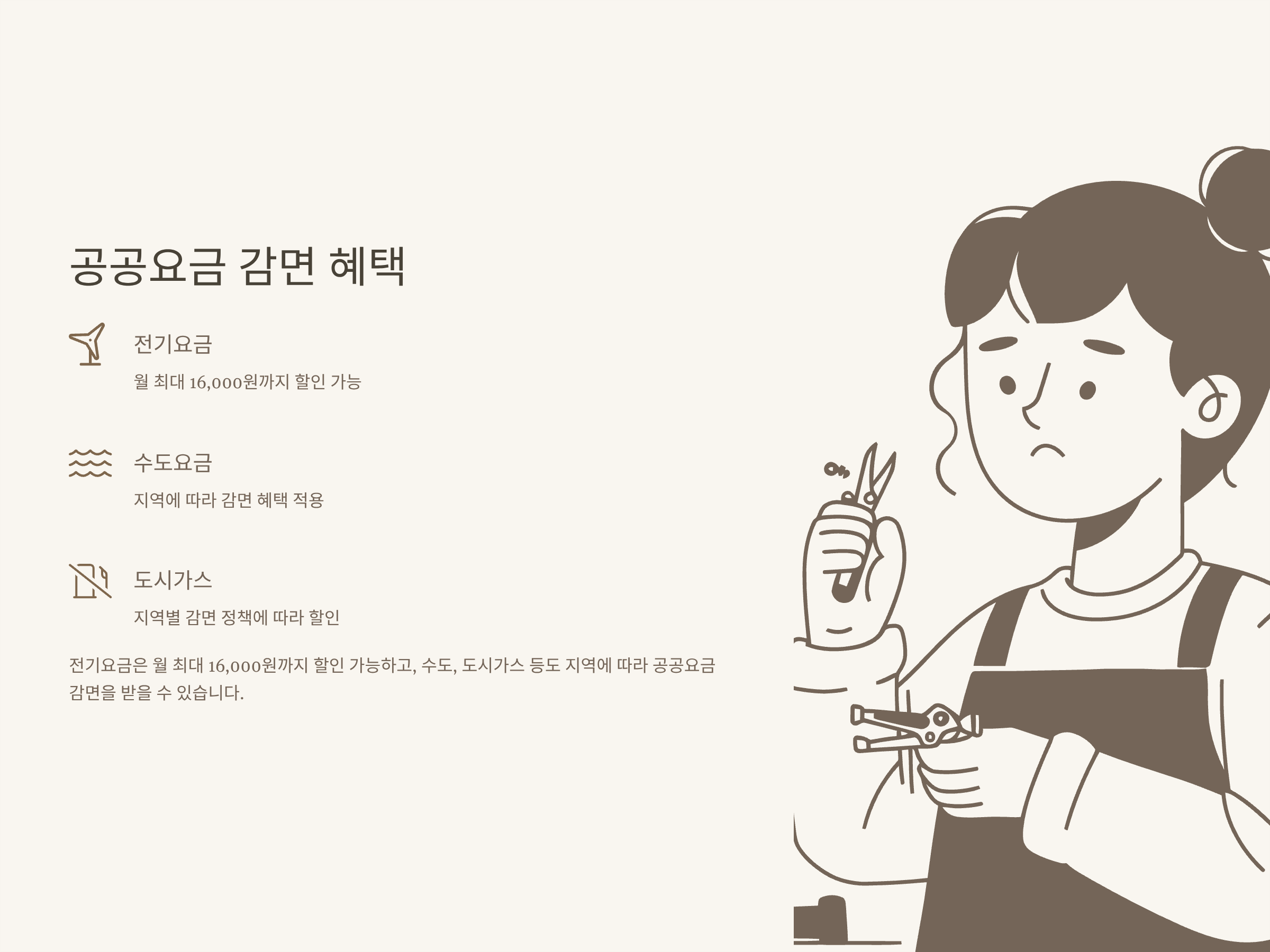 - 수도, 도시가스, 지역난방 등도 일부 공공요금 감면 가능