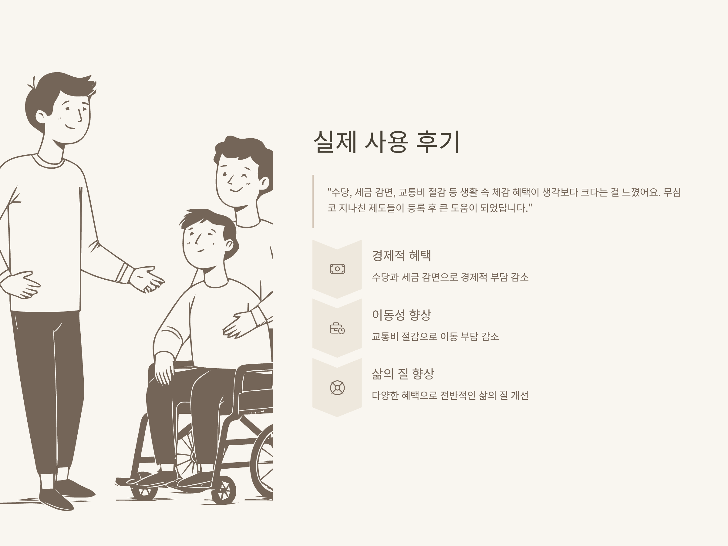 저 역시 처음엔 어렵게만 느껴졌던 경증 장애인 혜택, 제대로 챙기면 절대 무시 못 할 경제적, 생활적 이점이 분명히 있습니다.
