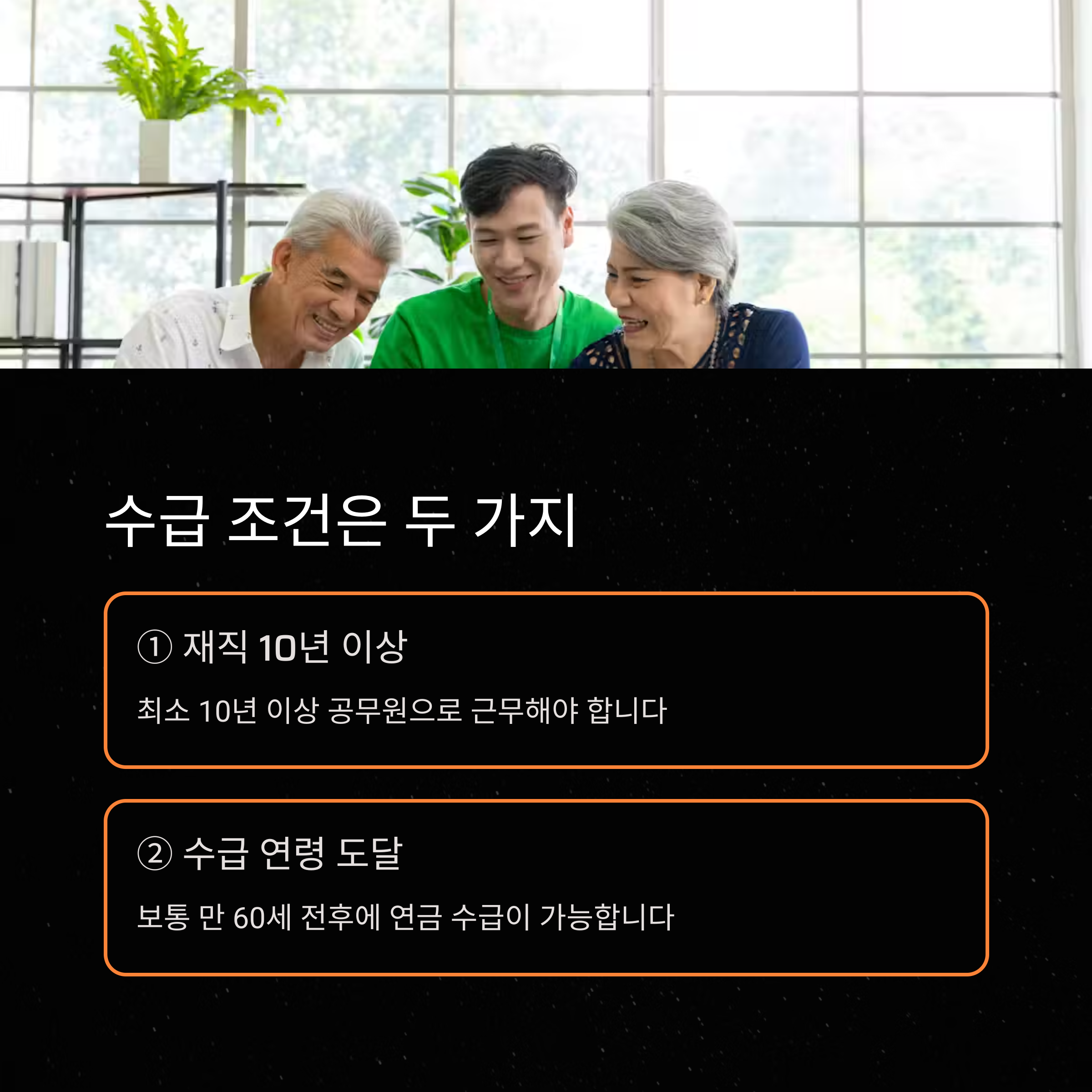 단순히 10년을 근무했다고 자동으로 연금을 받는 것이 아니며, 정년 또는 일정 연령 이상 퇴직해야 합니다. 예를 들어, 10년을 채우고도 50세 이전에 퇴직하면 연금 수급 개시는 60세 이후부터 시작될 수 있습니다.