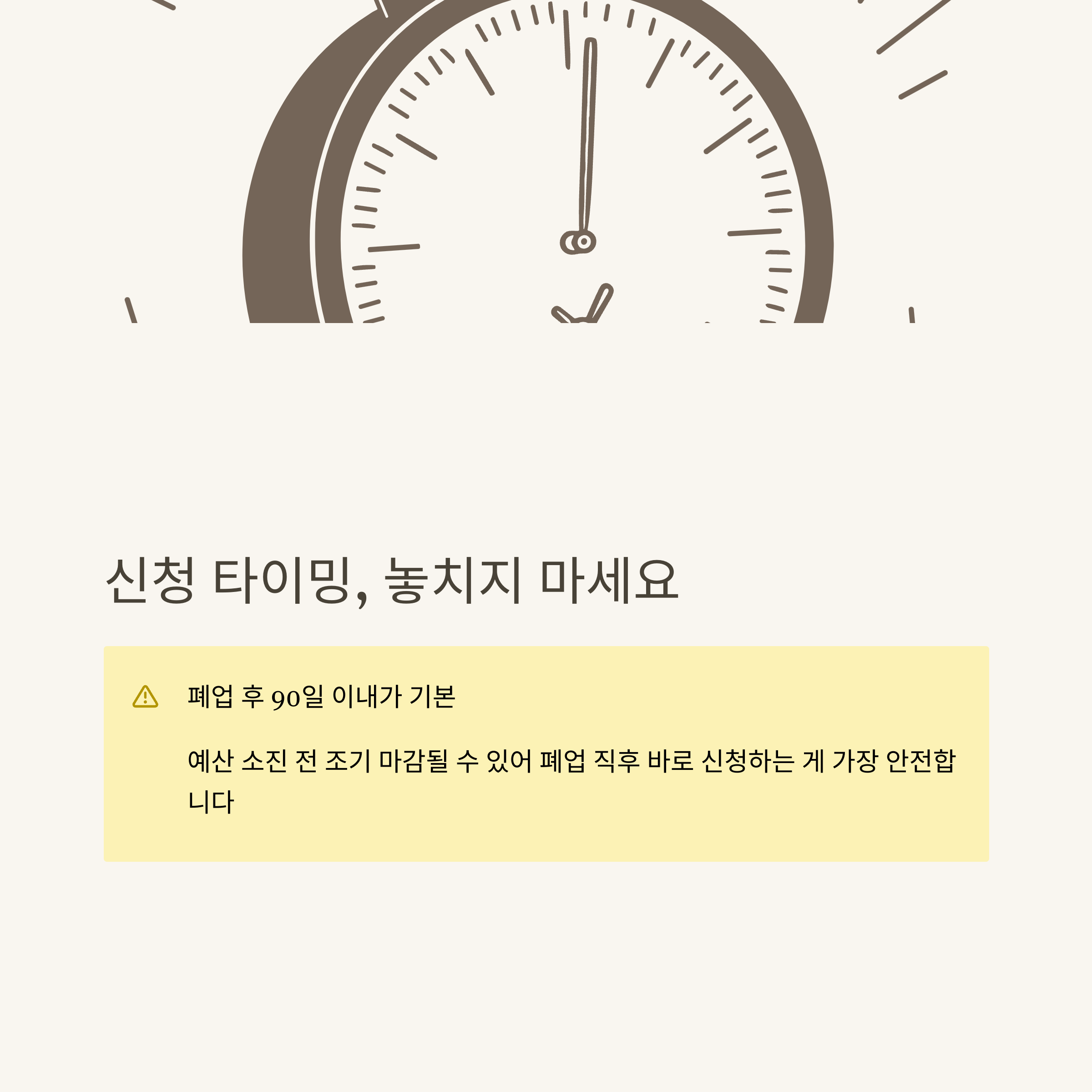 제가 실제로 신청해보니, 폐업지원금 신청기간을 놓치면 지원을 아예 받을 수 없더라고요. 그래서 제일 먼저 확인해야 할 게 바로 '언제까지 신청 가능한가'입니다. 기본 신청 기간은 폐업 후 90일 이내입니다. 단, 지역에 따라 예산 소진 시 조기 마감되기도 해서, 가급적 폐업 신고 후 30일 이내에 신청하는 걸 권장드려요.