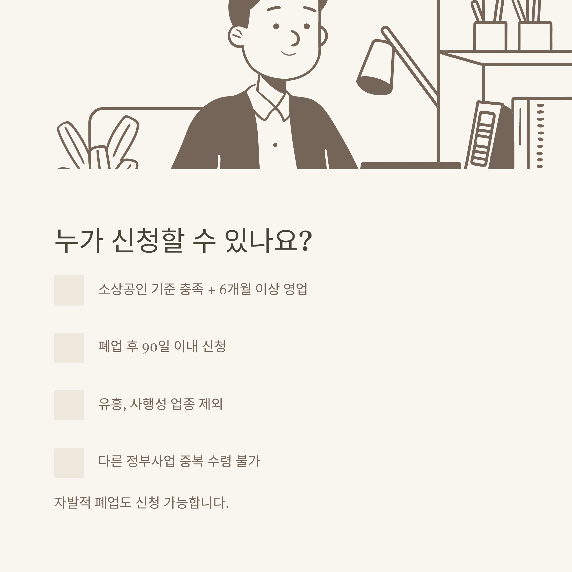 Q1. 소상공인 폐업지원금은 사업자 누구나 신청 가능한가요?