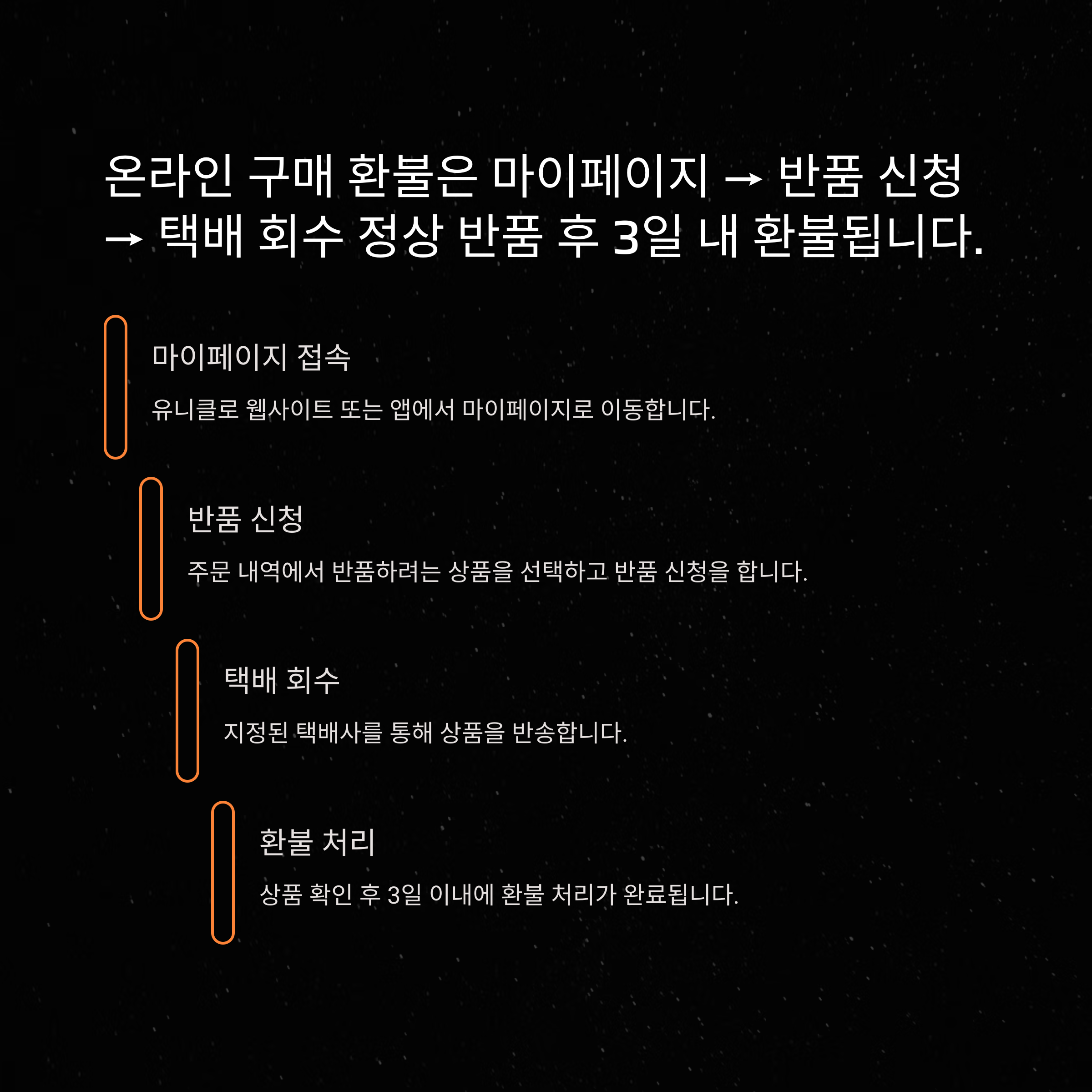 자세한 내용은 유니클로의 반품 안내 페이지에서 확인하실 수 있습니다.