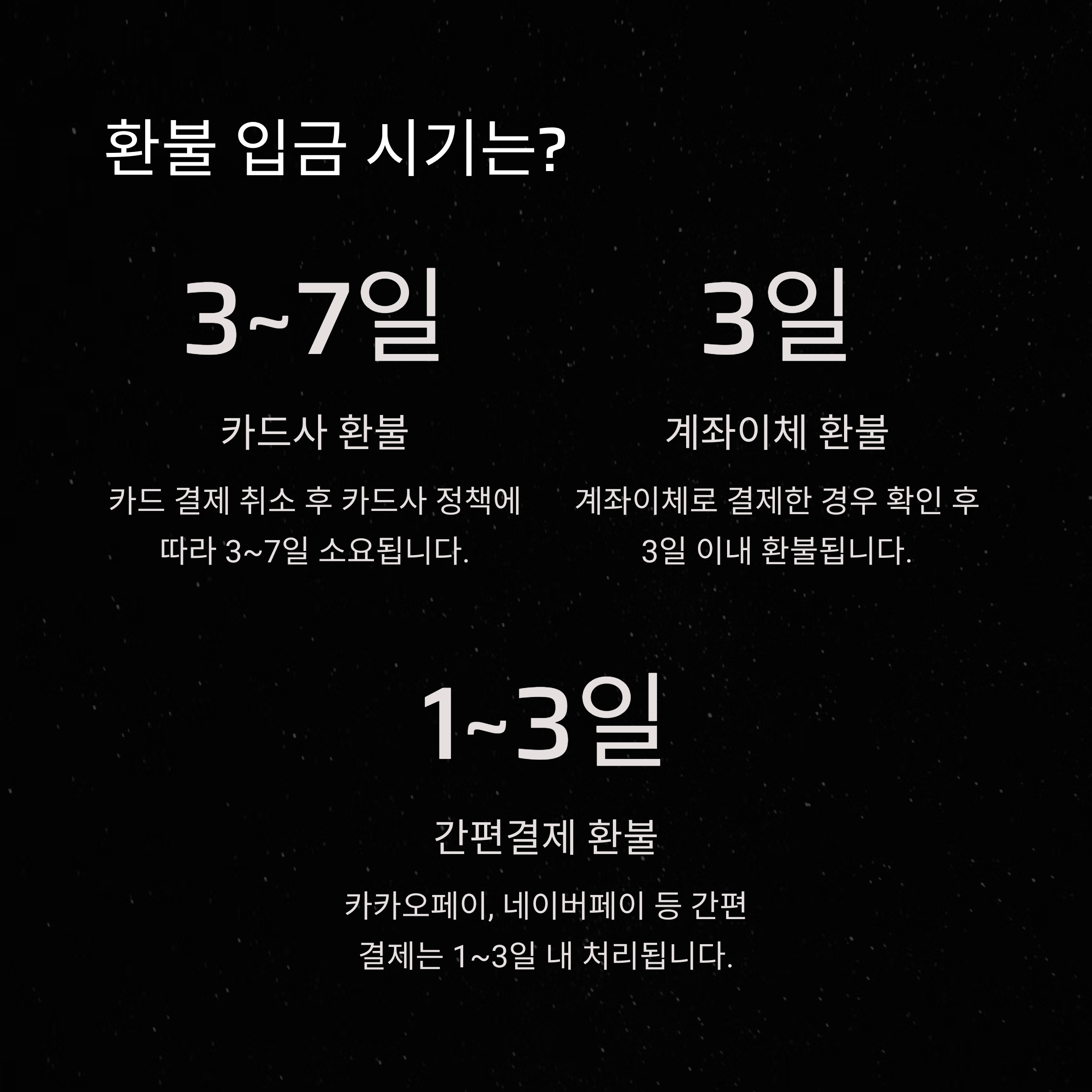 | 환불 소요기간 | 결제 수단별 1~7영업일 내 |